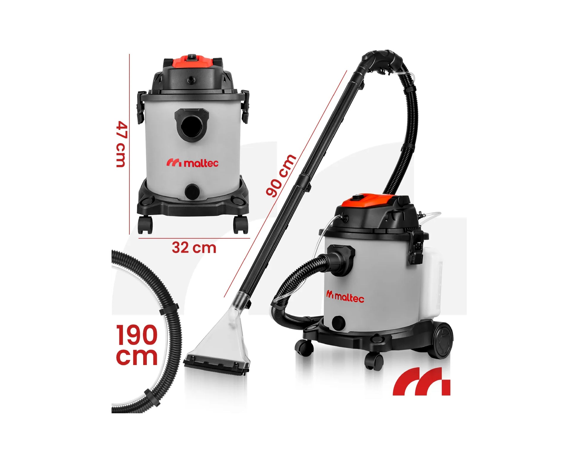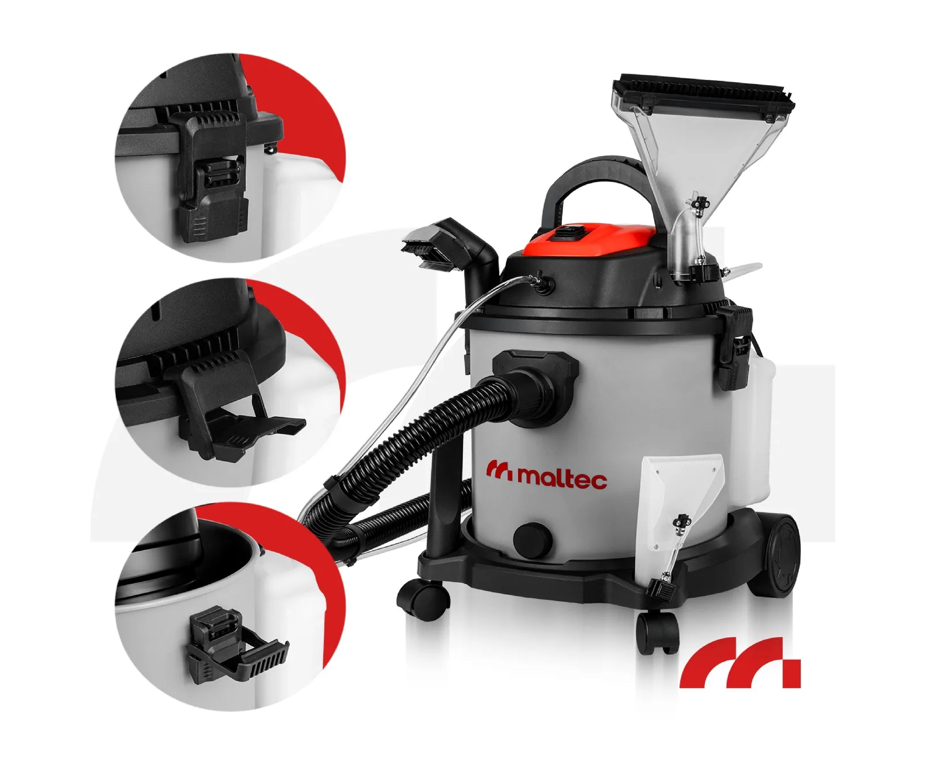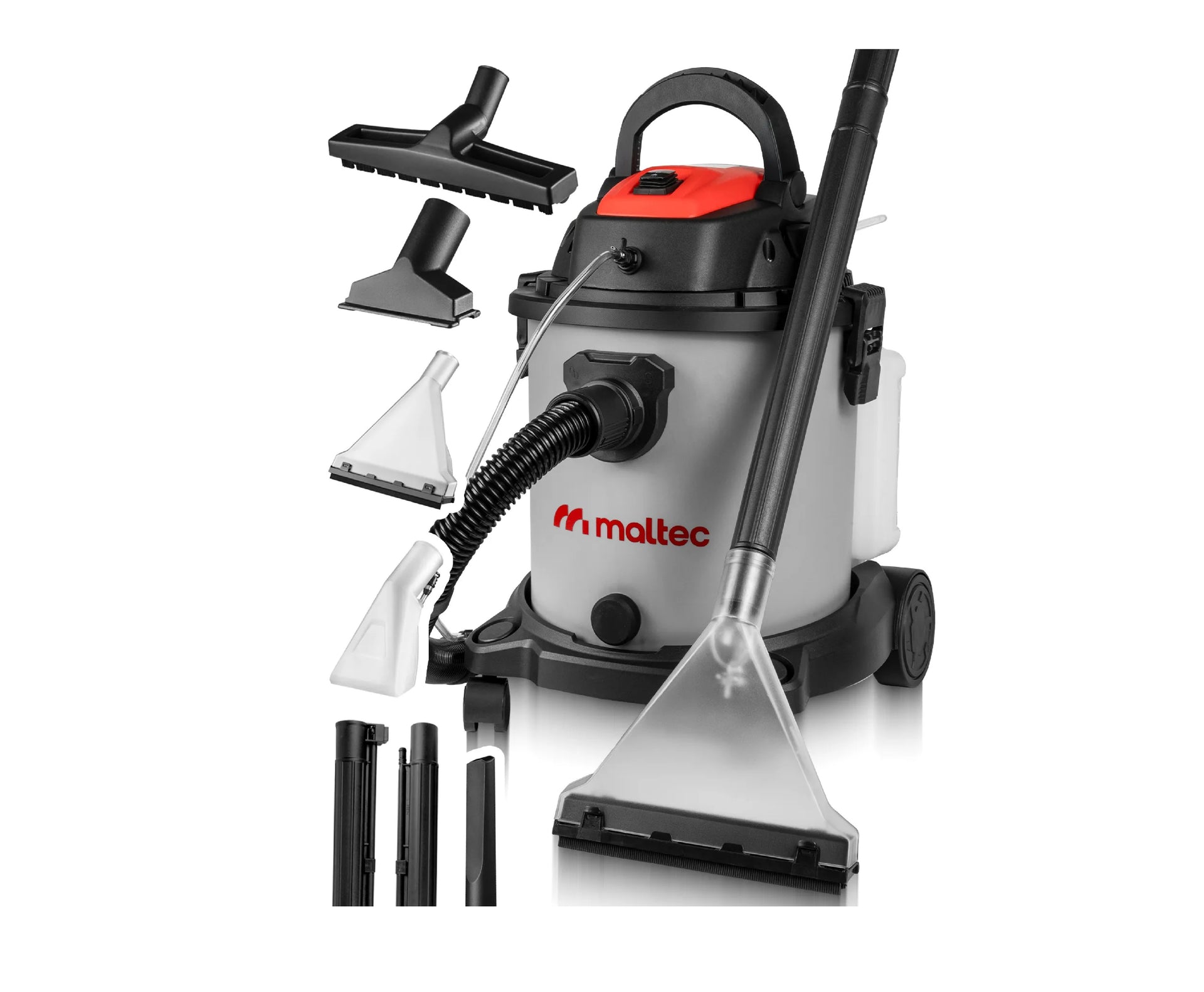 MalTec MasterWash2200W este un aspirator profesional 4 in 1 care combina aspirarea uscata, curatarea umeda, curatarea tapiteriei si functia de suflare. Cu puterea sa puternica de aspirare de 2200 W , capacitatea mare a rezervorului si sistemul eficient de filtrare, poate face fata oricarei sarcini - fie acasa, la birou, in garaj sau in masina.