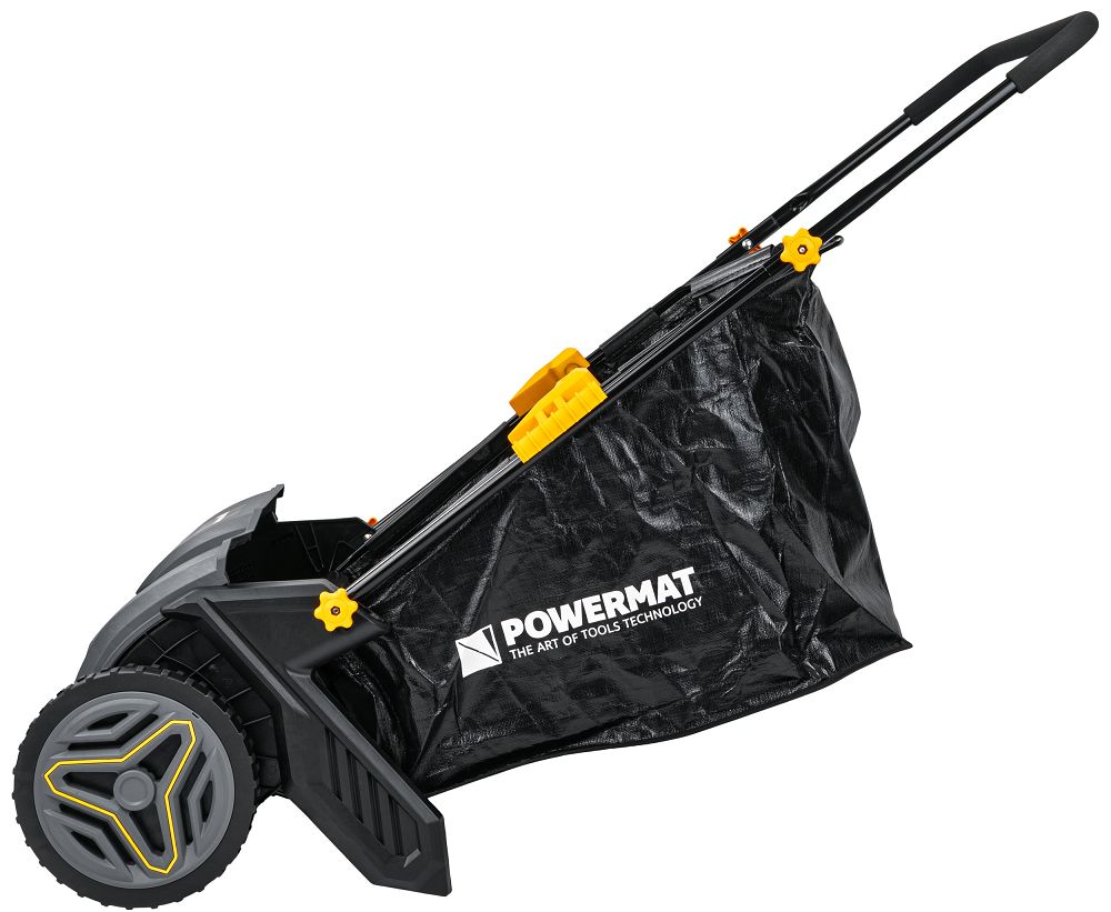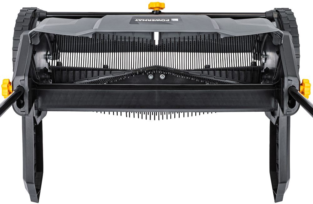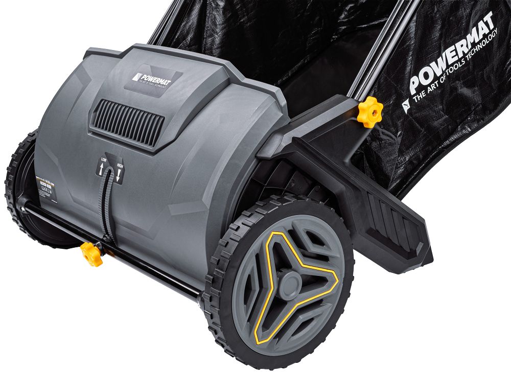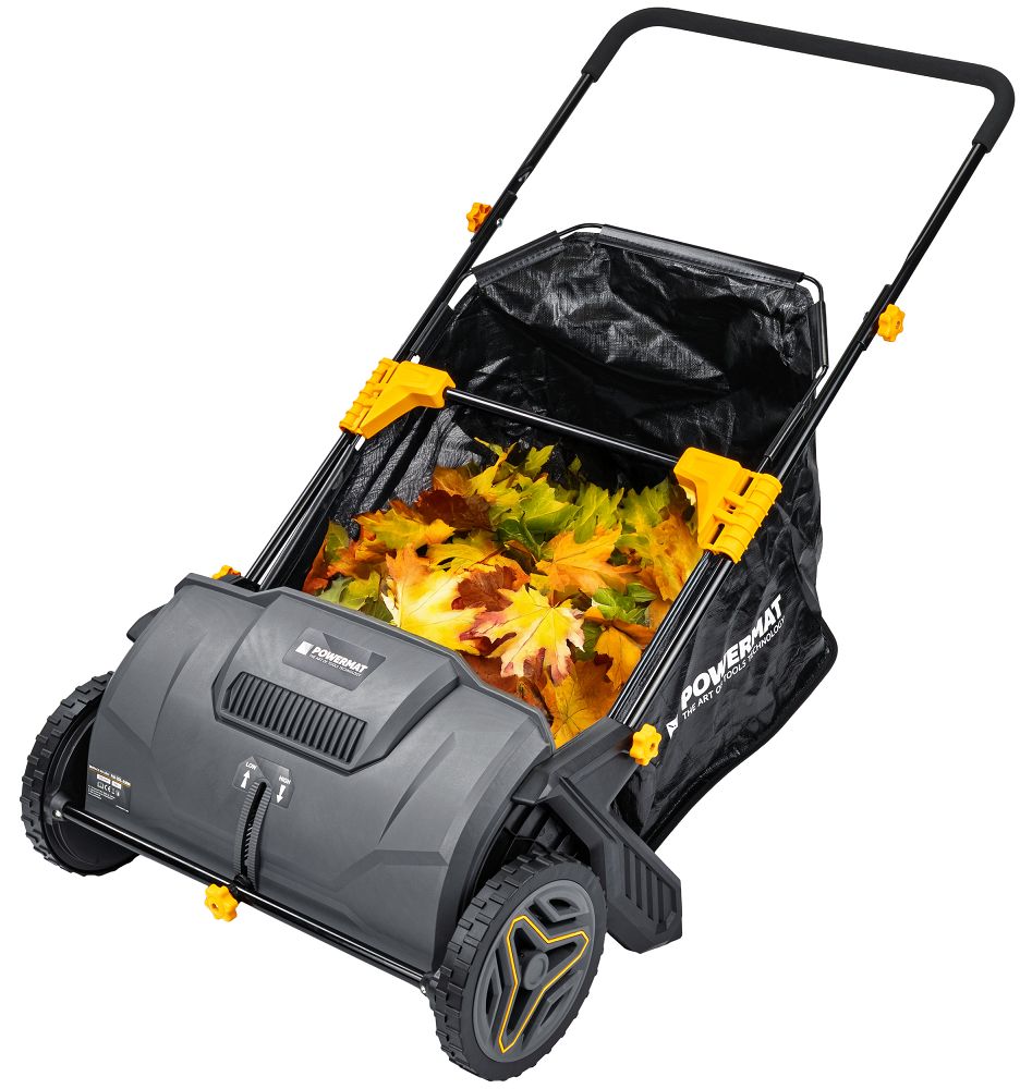 Periile rotative, activate de miscarea rotilor, trag frunzele, iarba si crengutele mici in cos, asigurand o functionare uniforma fara motor.