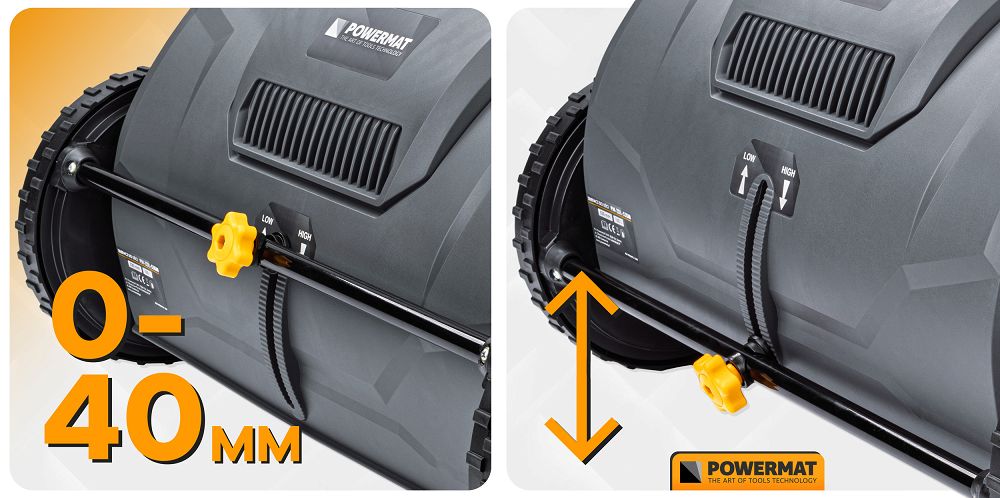 Functia de reglare lina a inaltimii de lucru in intervalul de la 0 la 40 mm va permite sa adaptati dispozitivul la tipul de suprafata – de la alei netede la peluze neuniforme.