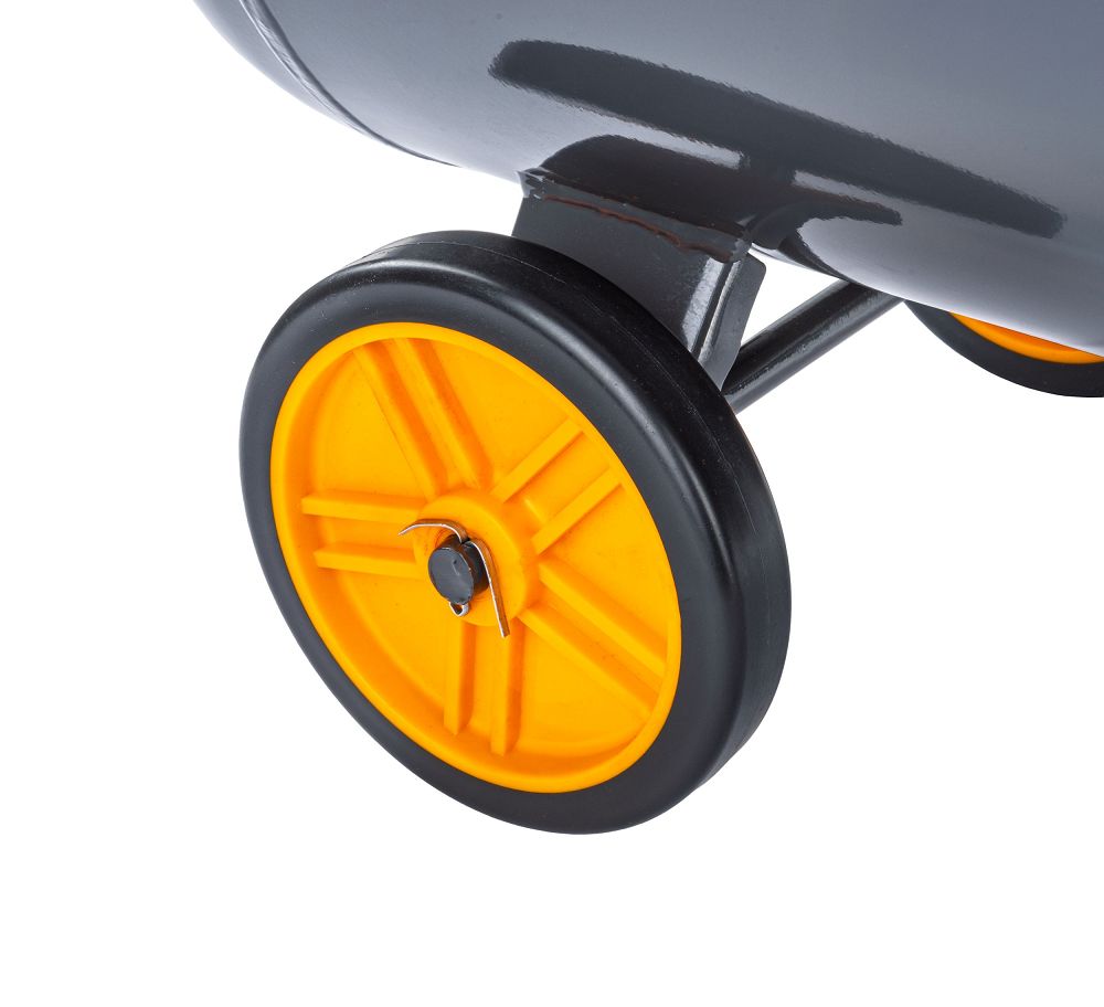Compresorul este usor de mutat datorita rotilor pivotante si manerului de transport convenabil.