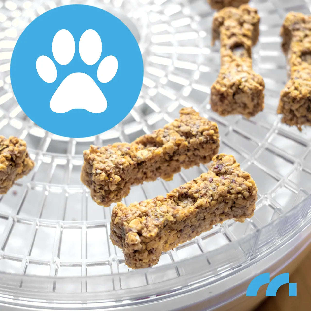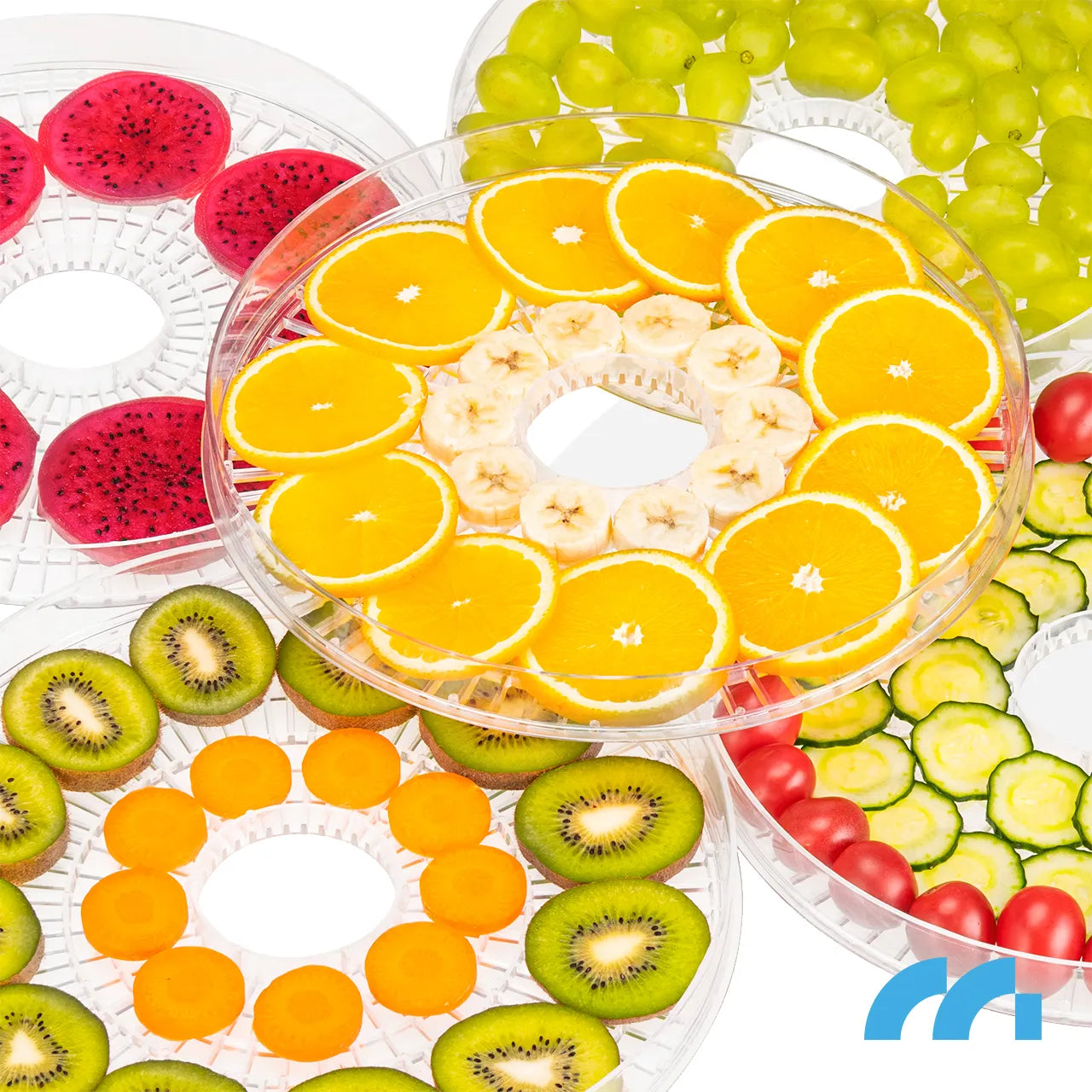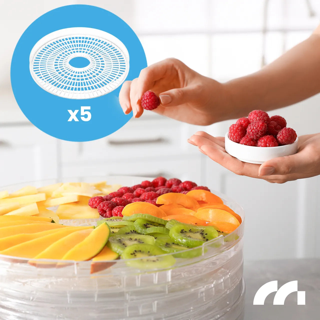- Pentru a mentine cei mai buni parametri de uscare, va sugeram sa extindeti timpul de uscare la maximum 9 site. Cu mai multe site, va recomandam sa uscati produsele cu un continut mai scazut de umiditate (de exemplu, ierburi aromatice, felii subtiri de fructe) sau sa prelungiti timpul de uscare pentru a mentine cele mai bune rezultate.