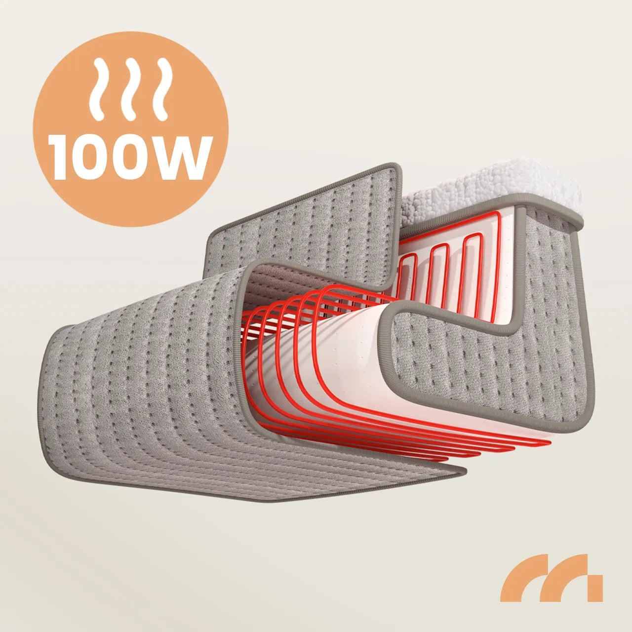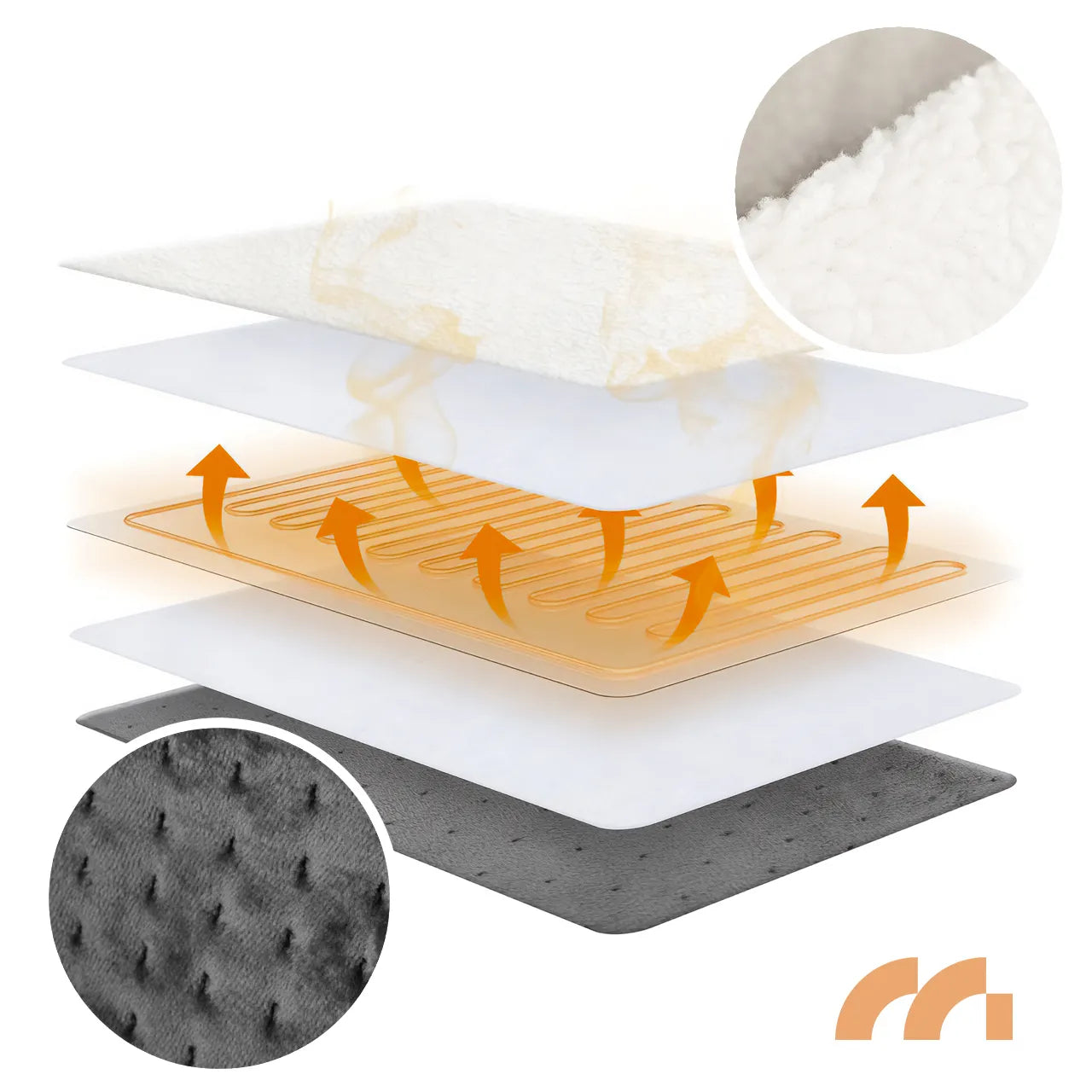 Deasupra, exista un strat moale, placut la atingere, din fleece , care asigura confort. La mijloc, exista un strat de incalzire cu un element electric care emite caldura, care se raspandeste uniform in sus. Stratul exterior este fabricat dintr-un material moale la atingere. Intregul design asigura confort, siguranta si incalzire eficienta a picioarelor.