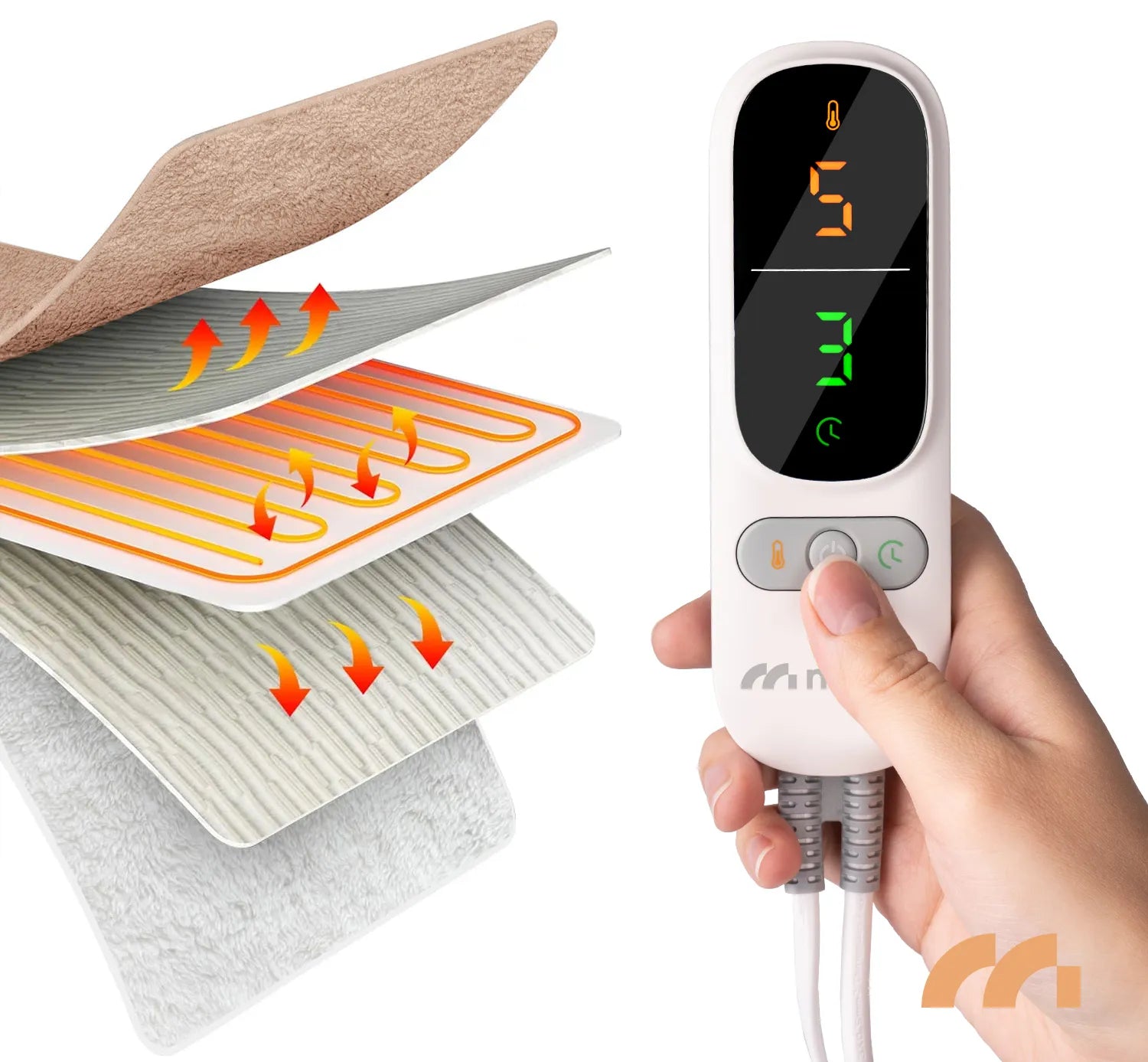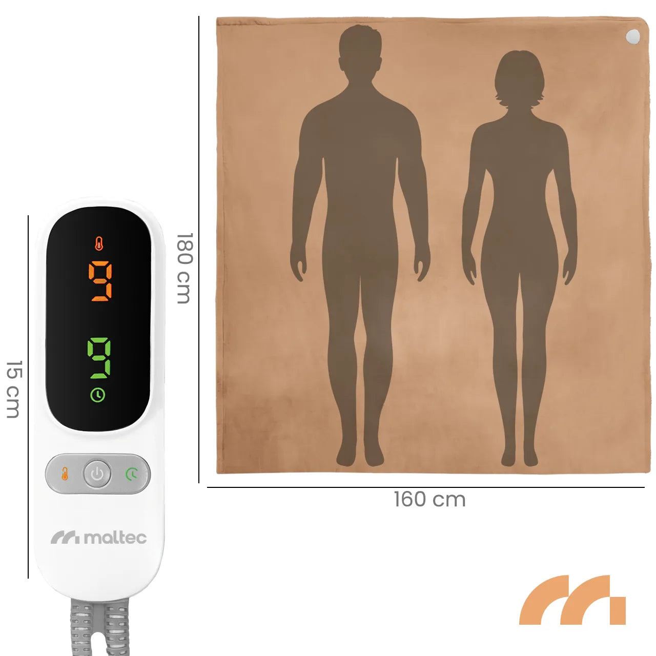 - Echipat cu un afisaj LED care arata clar temperatura curenta setata si timpul de incalzire, ofera control complet asupra functiilor paturii. Controlerul are trei butoane principale: