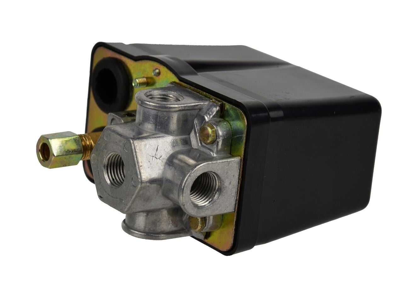 Presostat comutator de presiune, de culoare neagră, ce are o presiune maximă de 12 bar și o greutate de 0,43 kg.