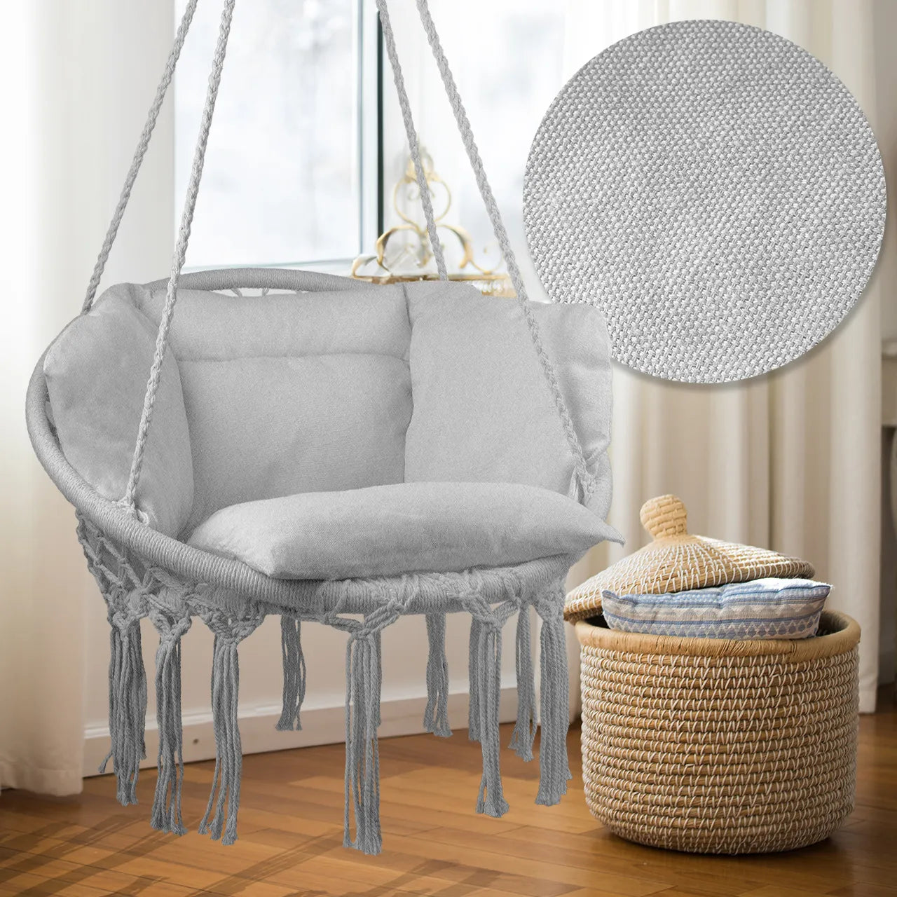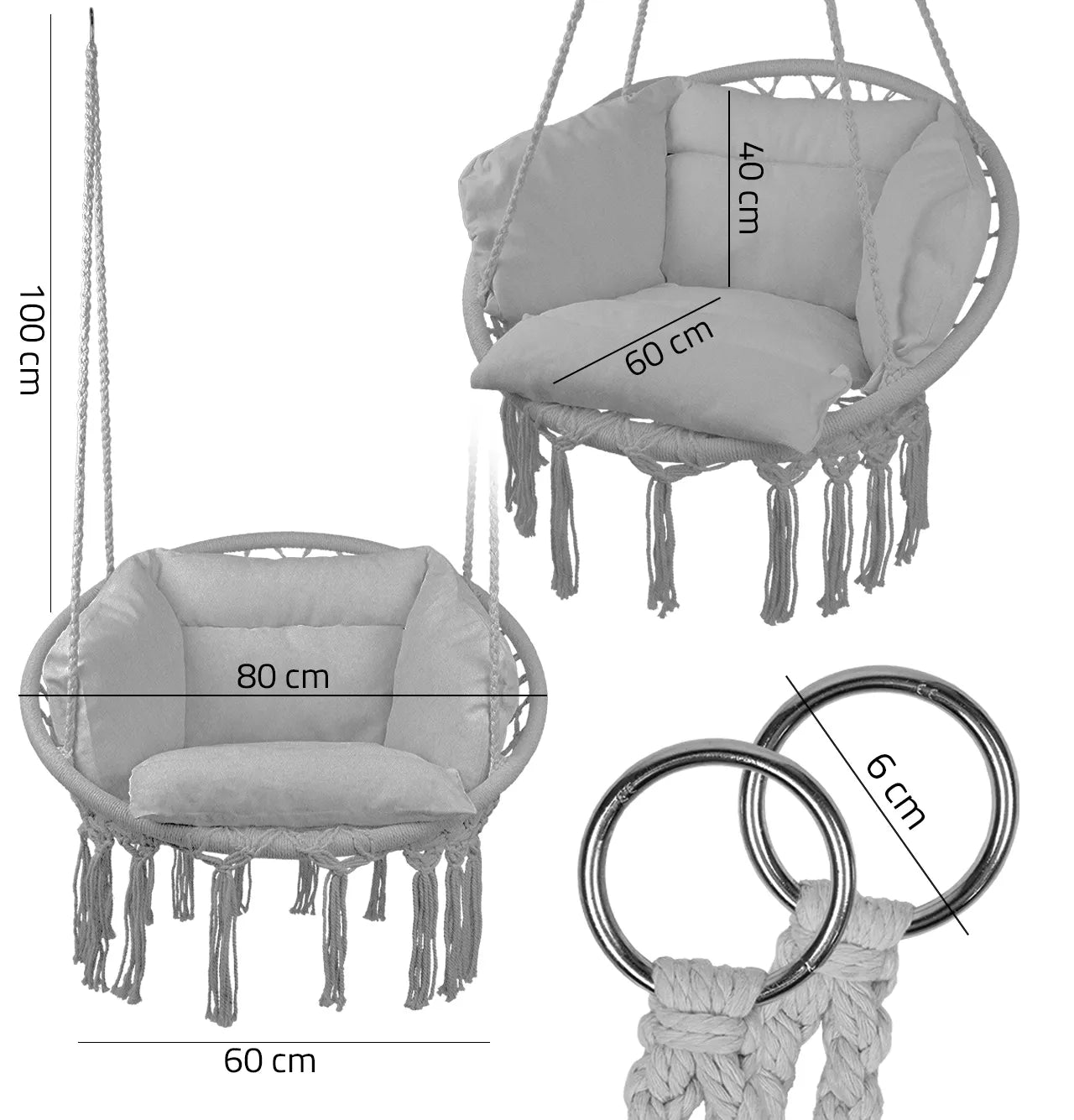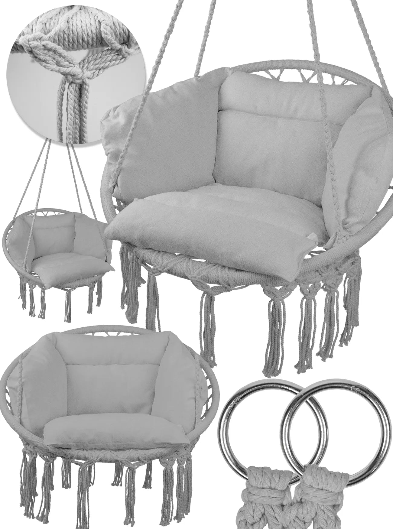Scaun suspendat de gradina cu perne Sunwaal, 60x40x80x110x130x100 cm, cadru metalic, capacitate maxim 150 kg, gri, MalTec 112862