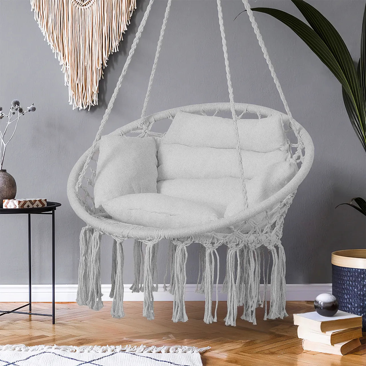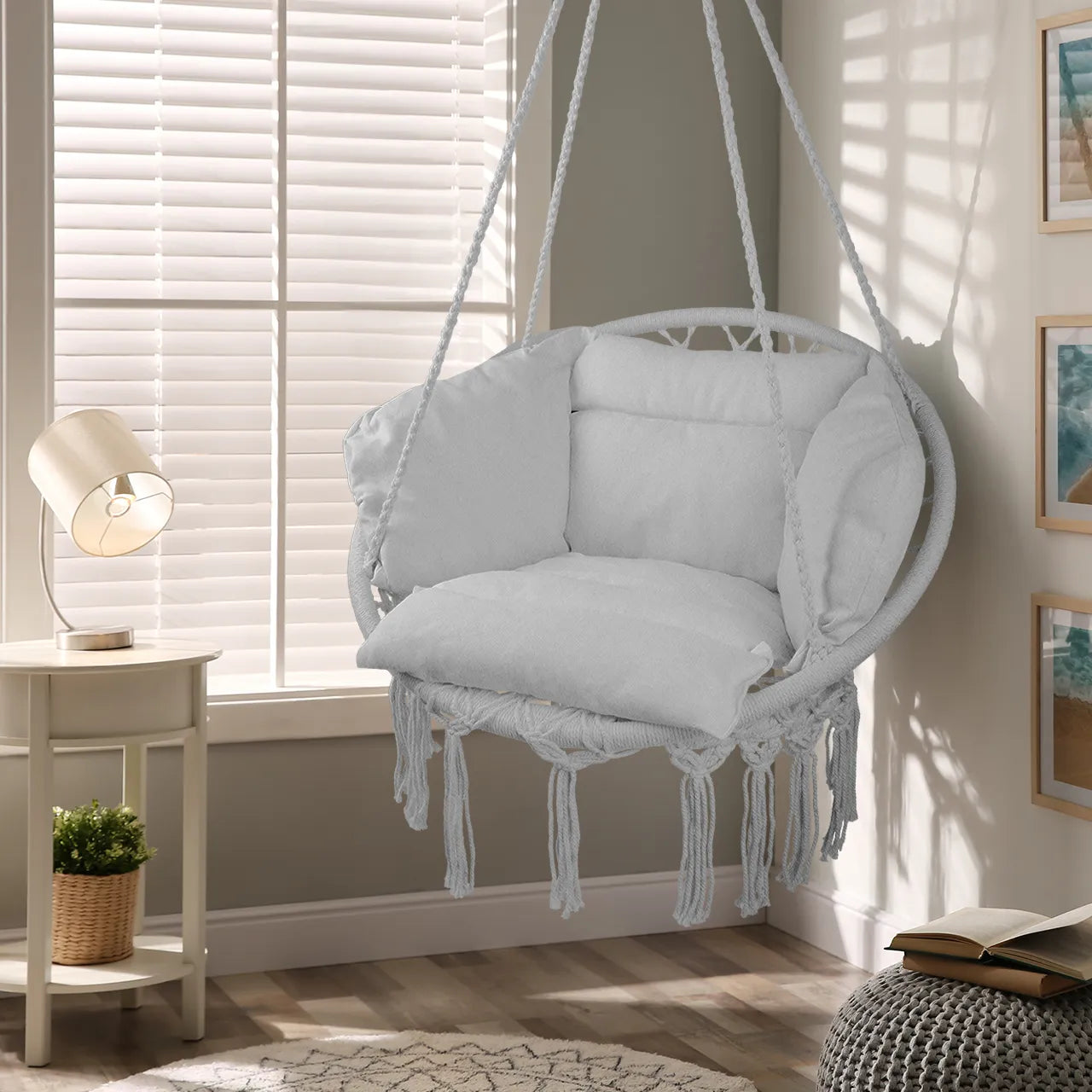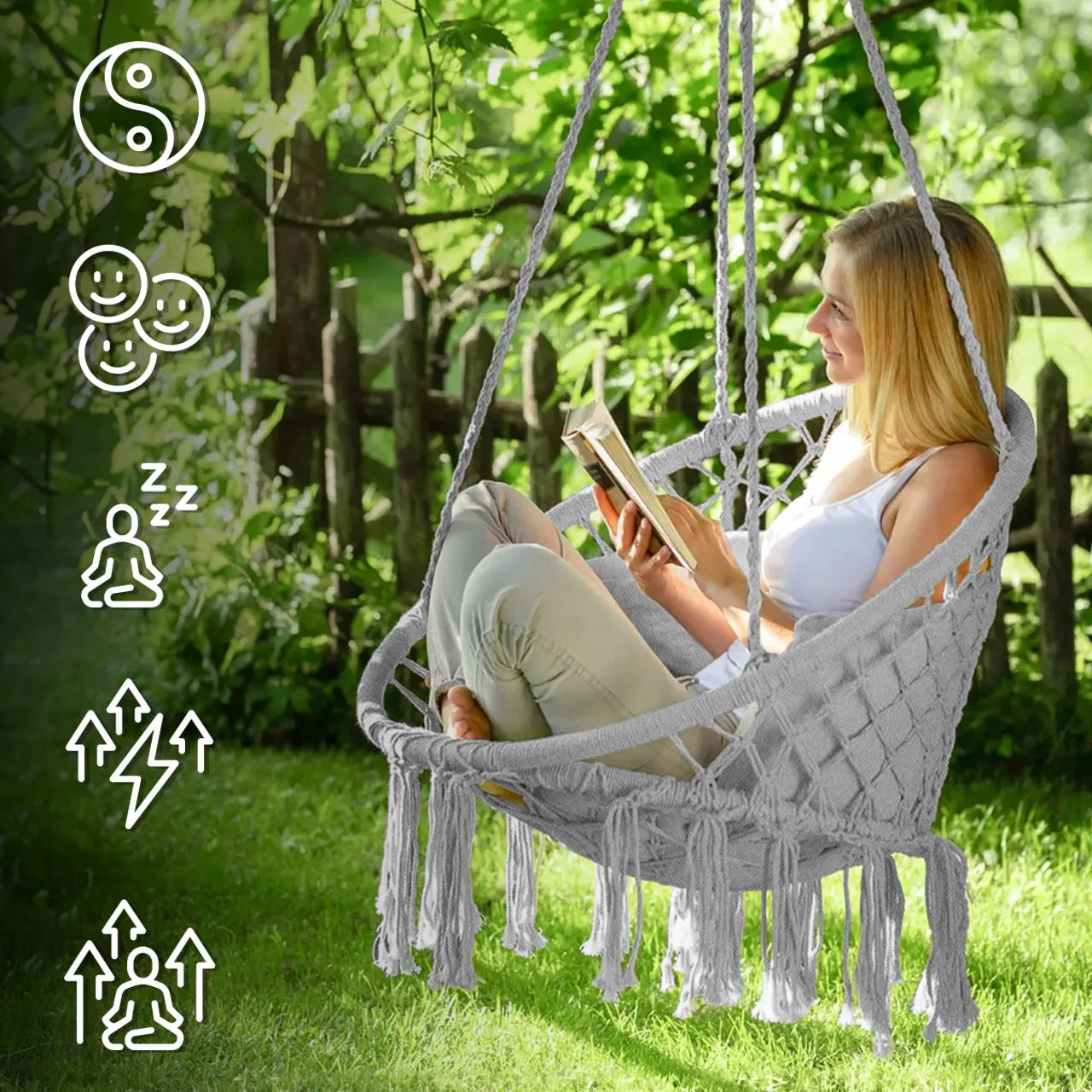 Scaun suspendat de gradina cu perne Sunwaal, 60x40x80x110x130x100 cm, cadru metalic, capacitate maxim 150 kg, gri, MalTec 112862