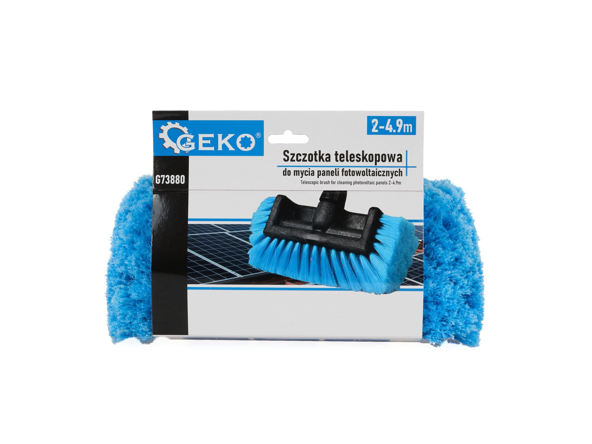 Setul pentru curatarea panourilor fotovoltaice Geko G73880 reprezinta o solutie completa si eficienta pentru mentinerea performantei optime a sistemelor solare. Cu un maner telescopic reglabil in lungime intre 2 si 4.9 metri, acest set va permite sa ajungeti la inaltimi variate, facilitand curatarea si intretinerea panourilor solare cu un minim de efort.