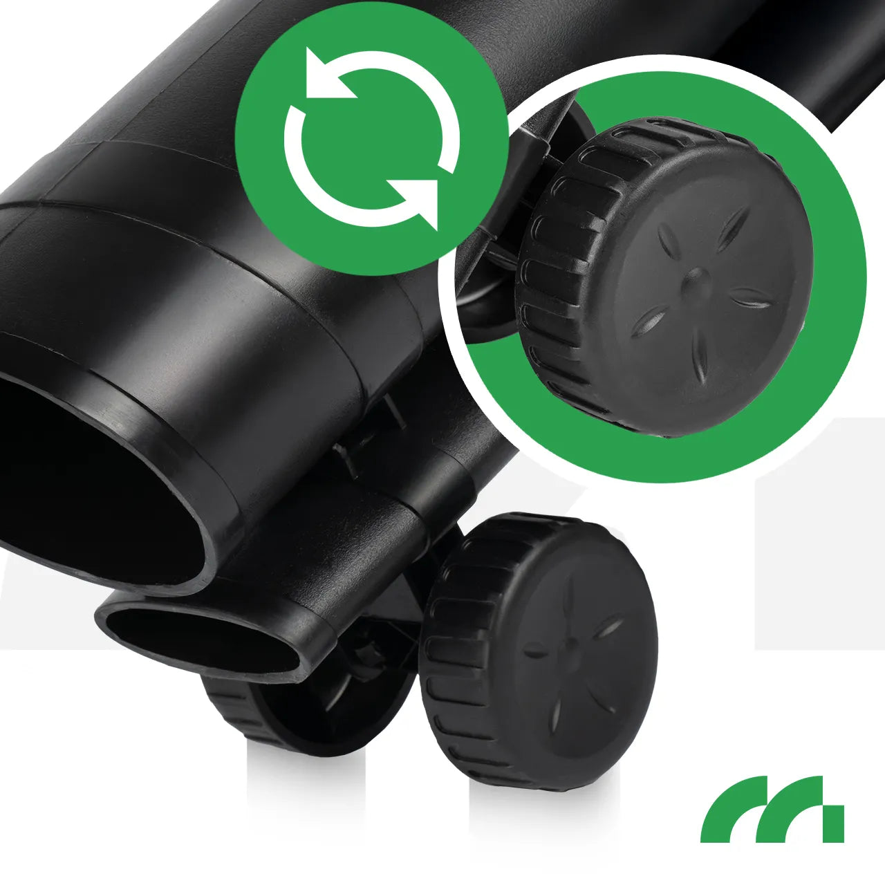 Capatul tubului este conturat si echipat cu roti de ghidare , care faciliteaza deplasarea dispozitivului pe sol si reduc solicitarea incheieturilor mainilor. Ne pasa de sanatatea dumneavoastra!
