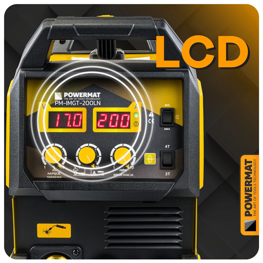 Interfata intuitiva cu un panou de control clar si doua afisaje LCD permite configurarea rapida a parametrilor si controlul deplin asupra procesului de sudare.