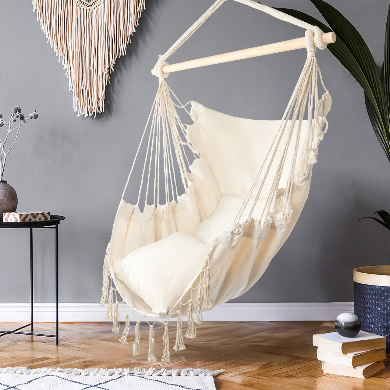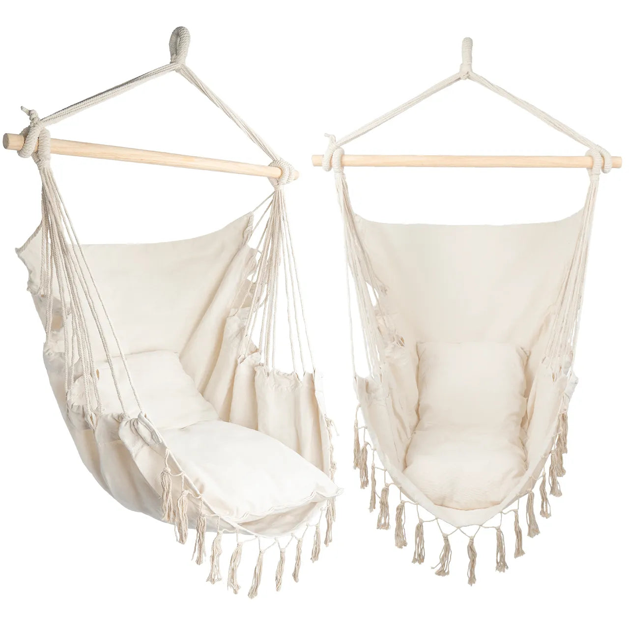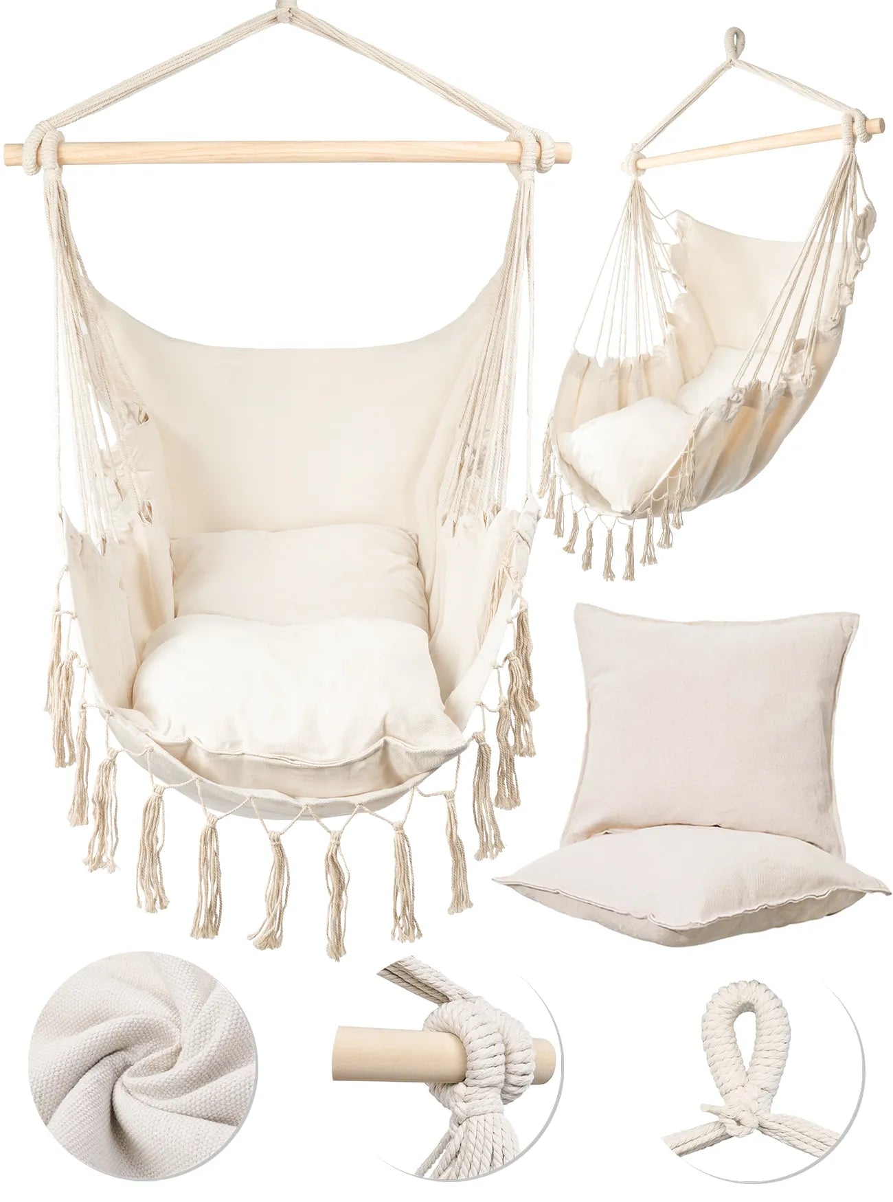 Cadrul din lemn face ca hamacul sa fie nu doar placut din punct de vedere estetic, ci si mai functional. Acesta ofera stabilitate, prevenind in acelasi timp incurcarea corzilor, sporind si mai mult durabilitatea acestui scaun unic.