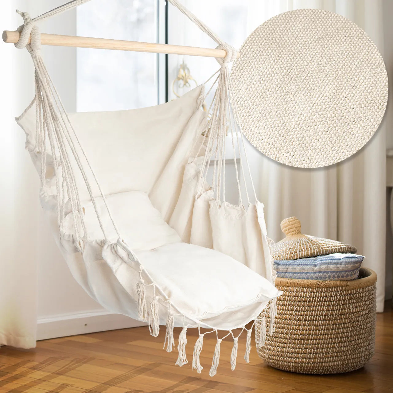 Scaun suspendat de gradina, scaun brazilian, hamac, balansoar, cocon, 2 perne, diametru/latime sezut 100 cm