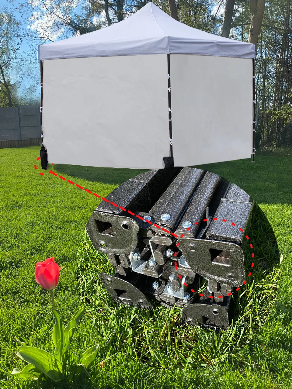 In plus, constructia stabila a cortului este asigurata de picioare cu gauri de ancorare. Acestea ofera posibilitatea unei prinderi solide pe diverse tipuri de sol :