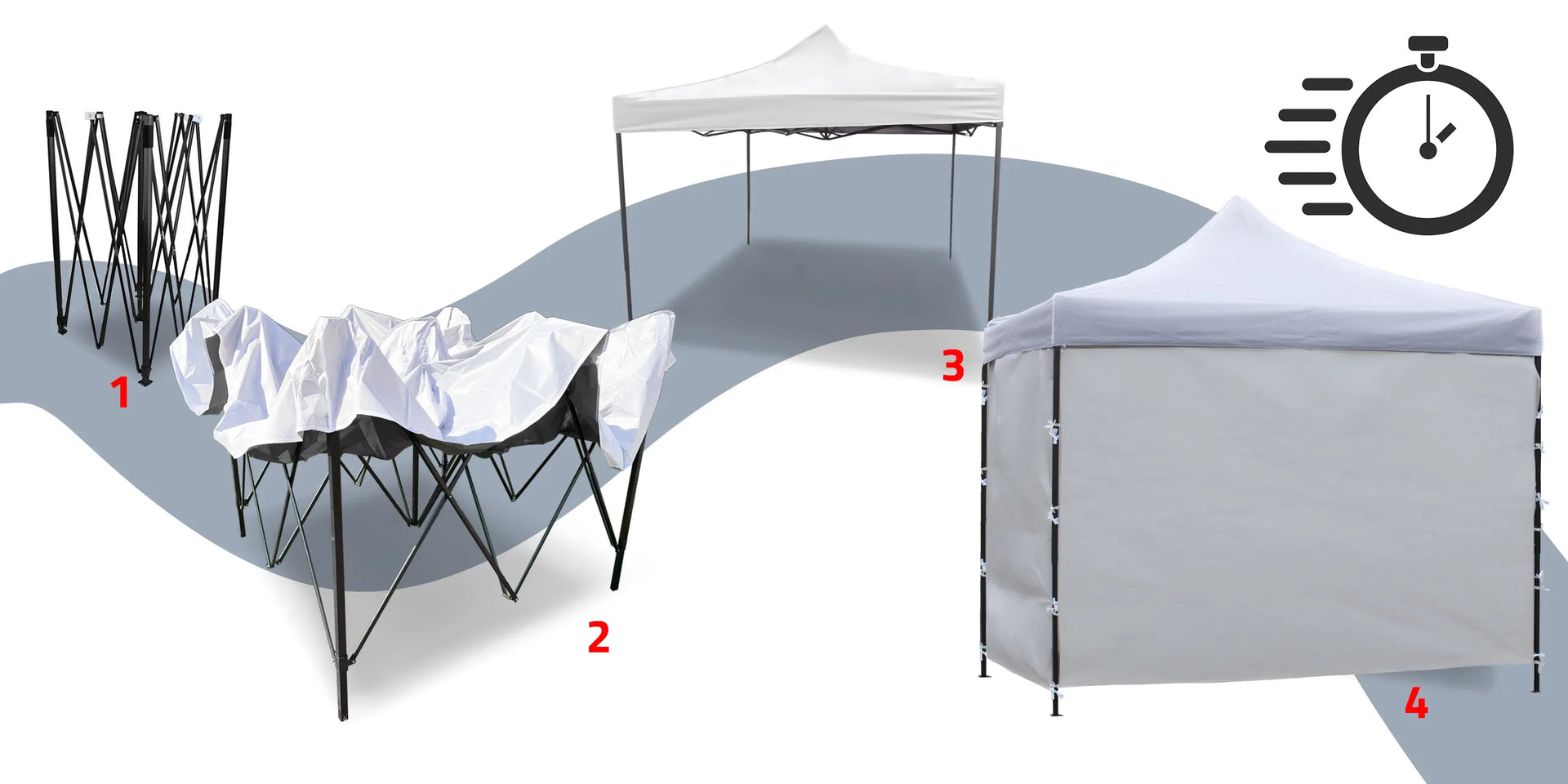 Pavilionul este foarte usor de asamblat si dezasamblat. Dureaza literalmente vreo doisprezece minute pentru a fi montat si nu necesita ajutorul altor persoane!
