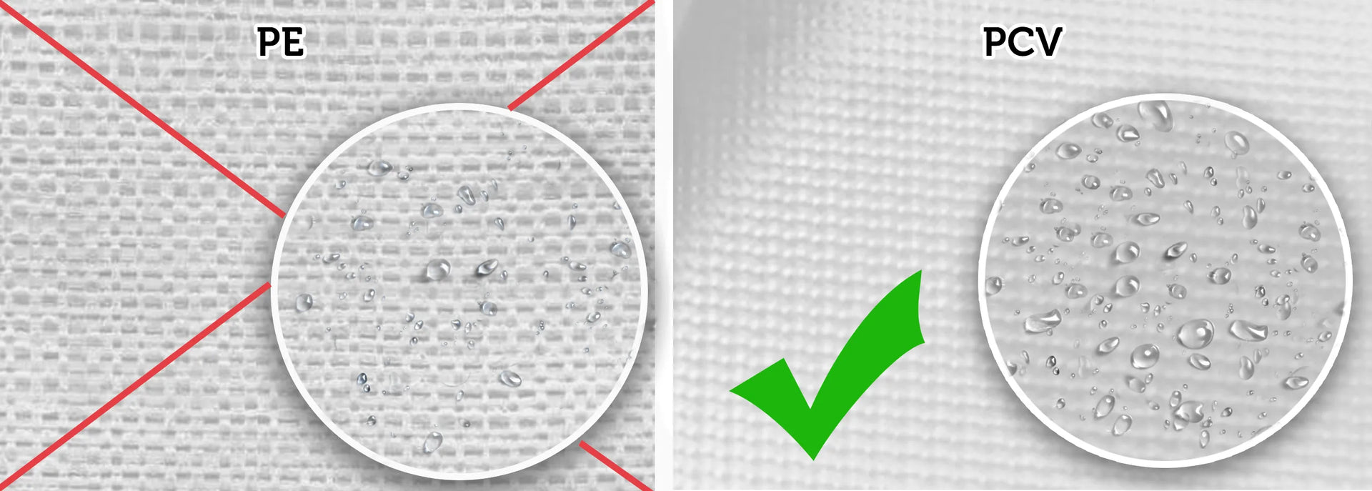 Materialul este rezistent la lumina soarelui si la alte conditii meteorologice (vant, ploaie, zapada, grindina), precum si la deteriorarea cauzata de curatarea regulata. Materialul PVC este netoxic si reciclabil!