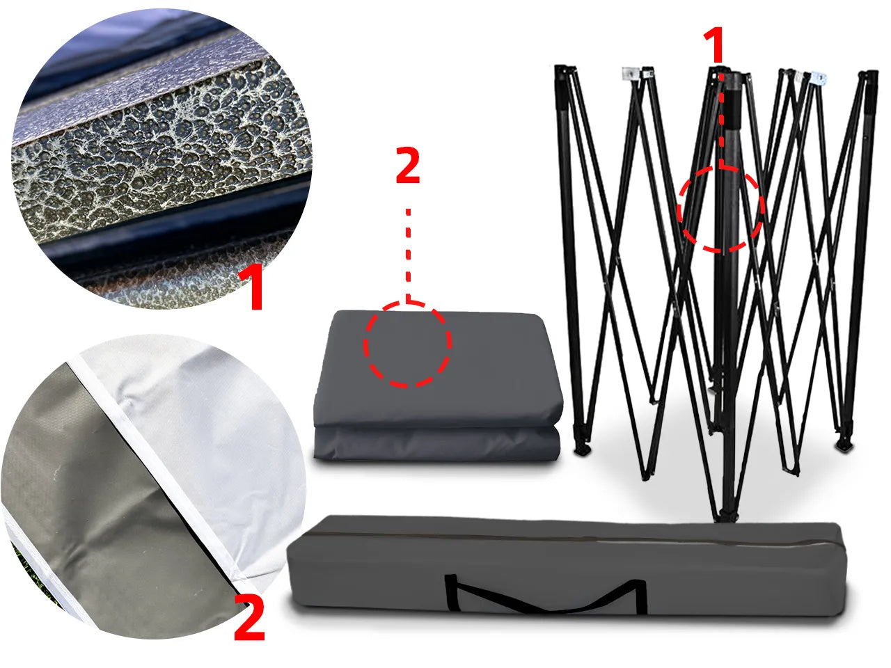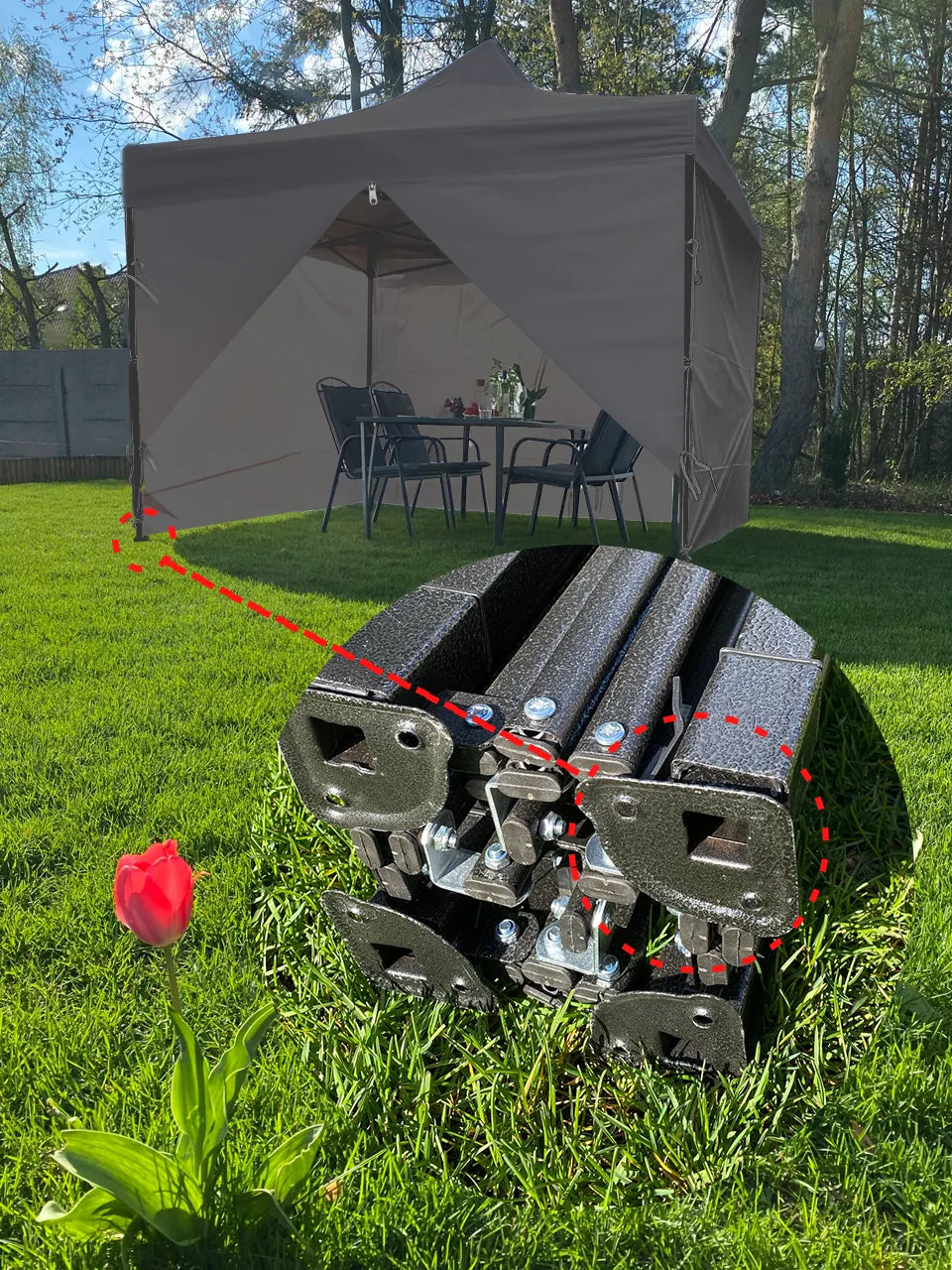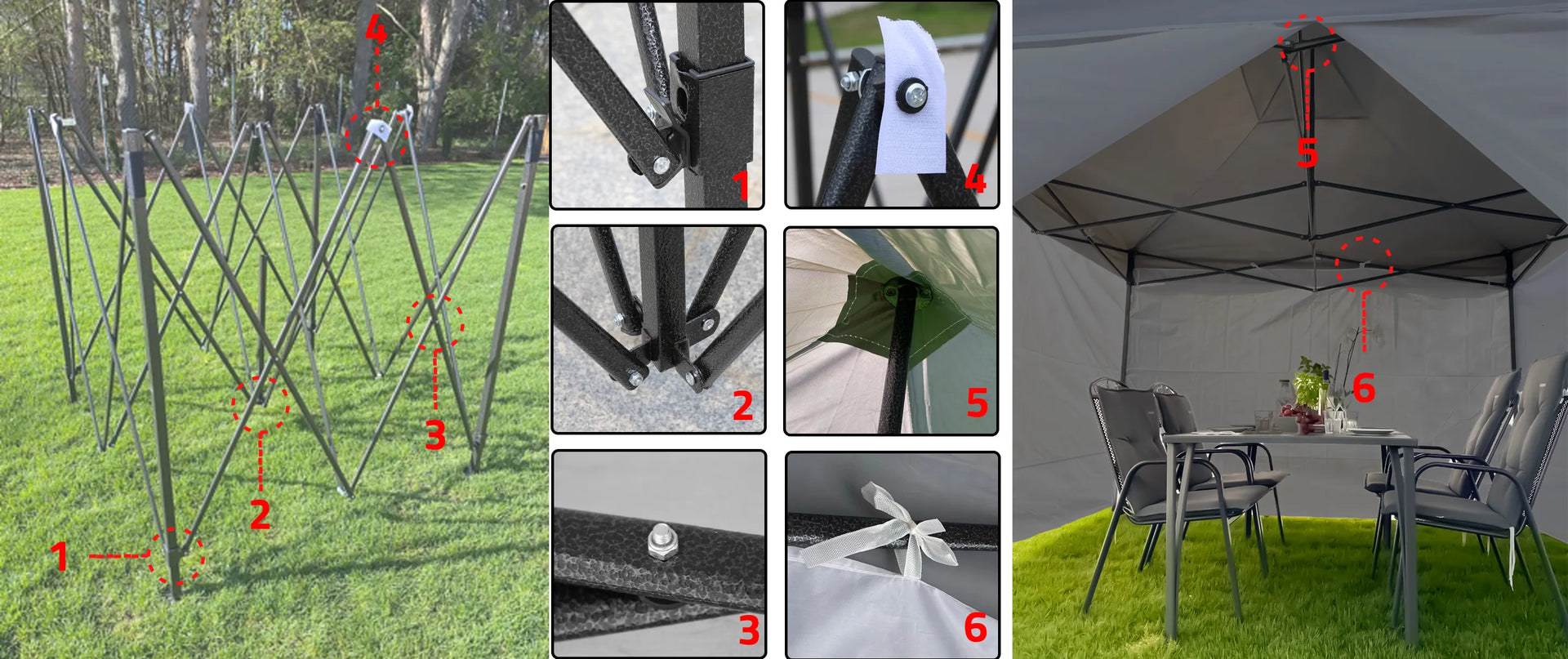 - Sistemul de blocare faciliteaza asamblarea, dezasamblarea si reglarea pavilionului pliabil.