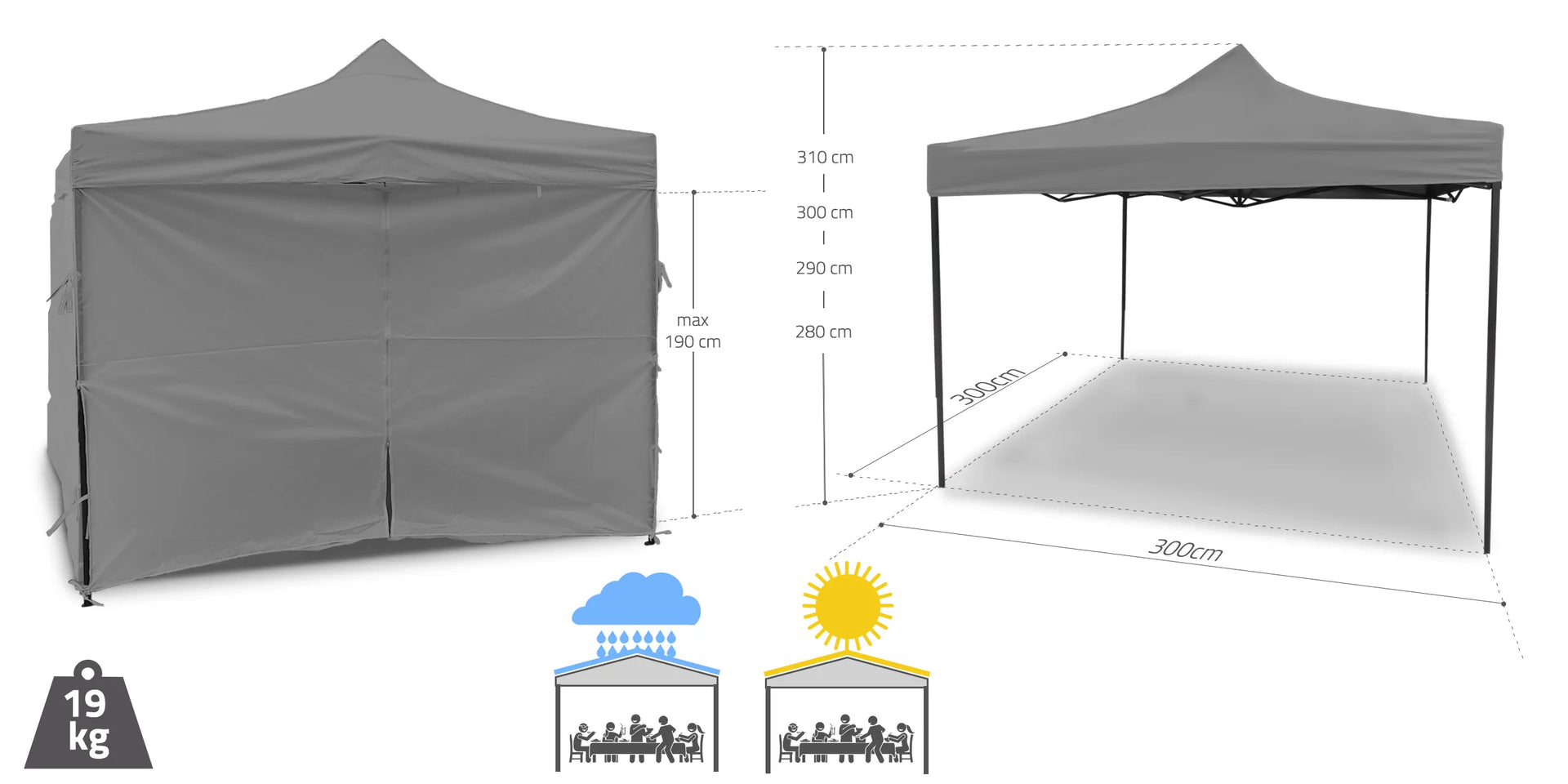 Pavilionul este foarte usor de asamblat si dezasamblat. Dureaza literalmente vreo doisprezece minute pentru a fi montat si nu necesita ajutorul altor persoane!