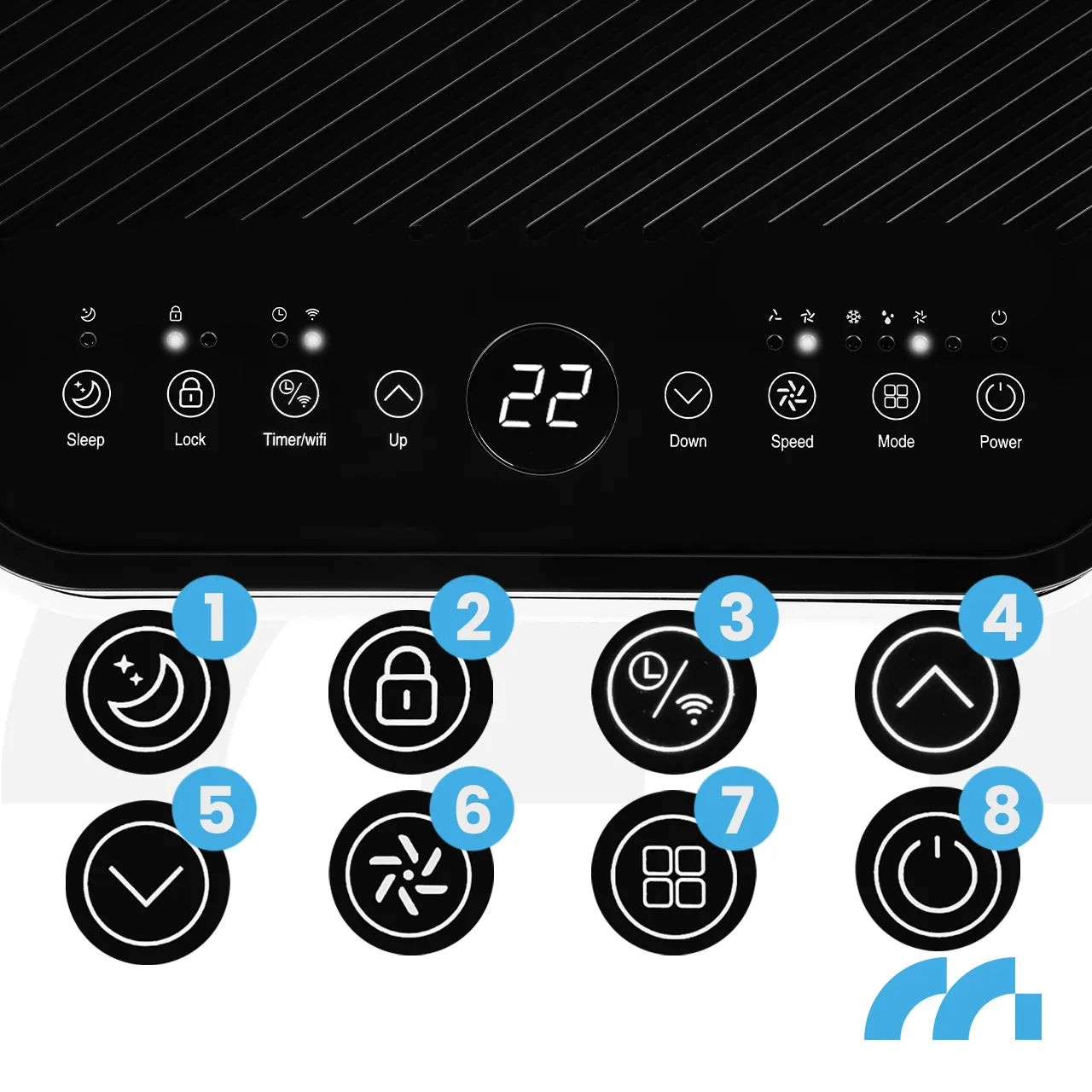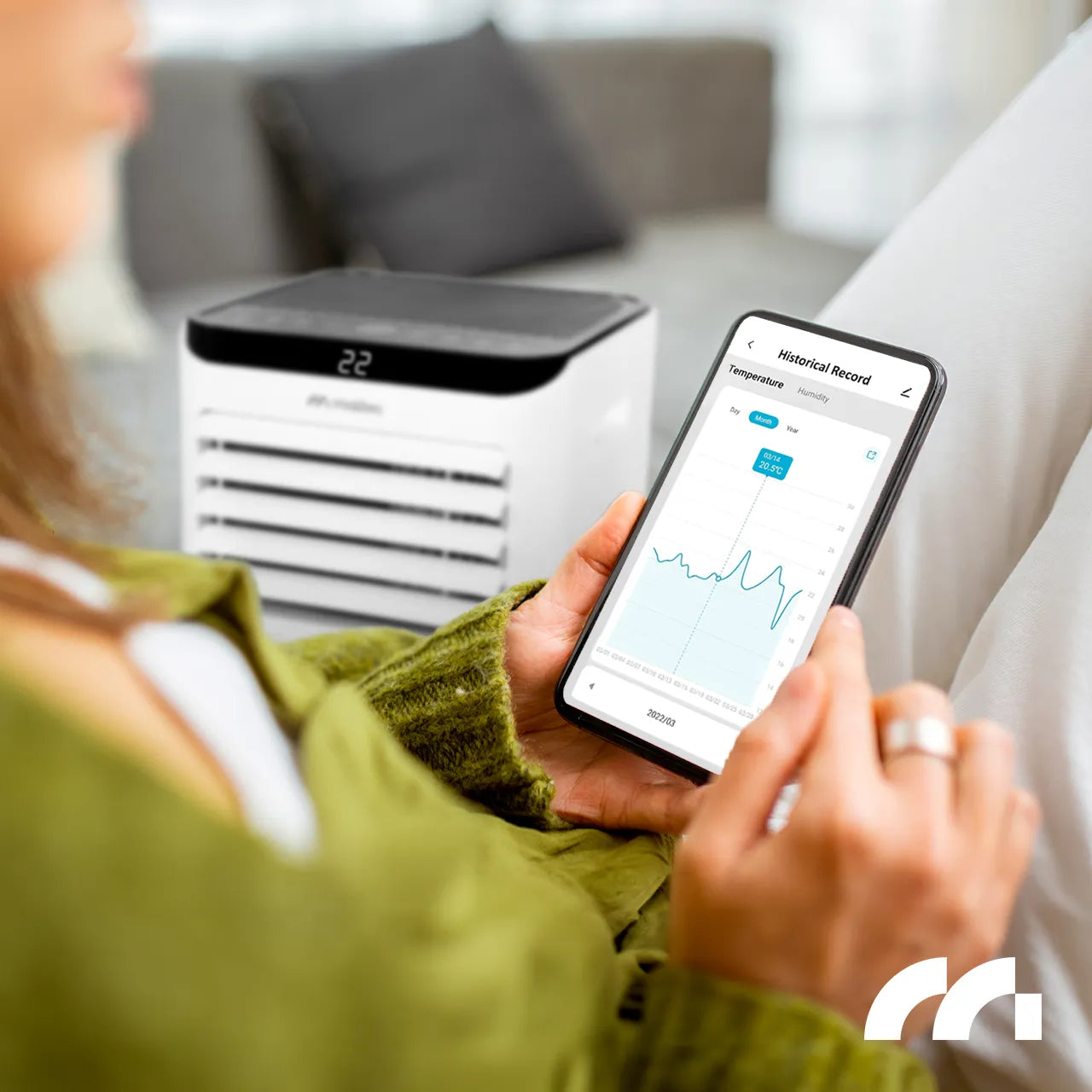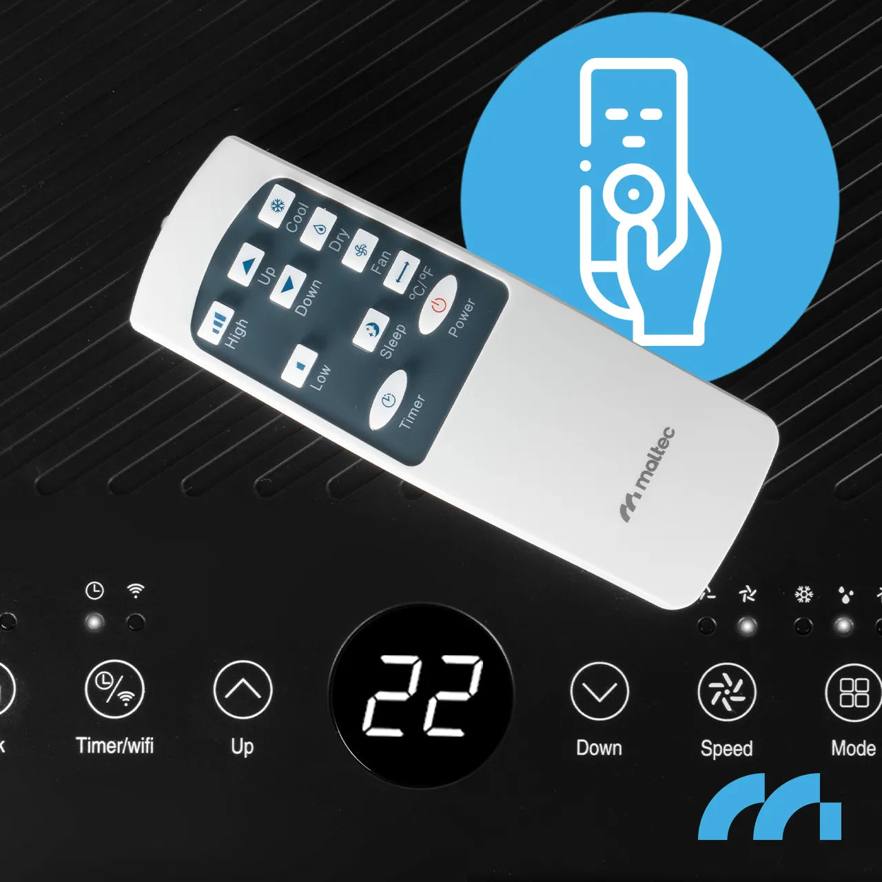Aparatul de aer conditionat IcePRO2600 este echipat cu Wi-Fi , o telecomanda si un panou tactil LED, asigurand o utilizare completa si usoara. Conectarea la o aplicatie mobila va permite sa controlati setarile aparatului de aer conditionat de oriunde, inclusiv schimbarea modurilor de functionare, reglarea temperaturii si gestionarea temporizatorului.