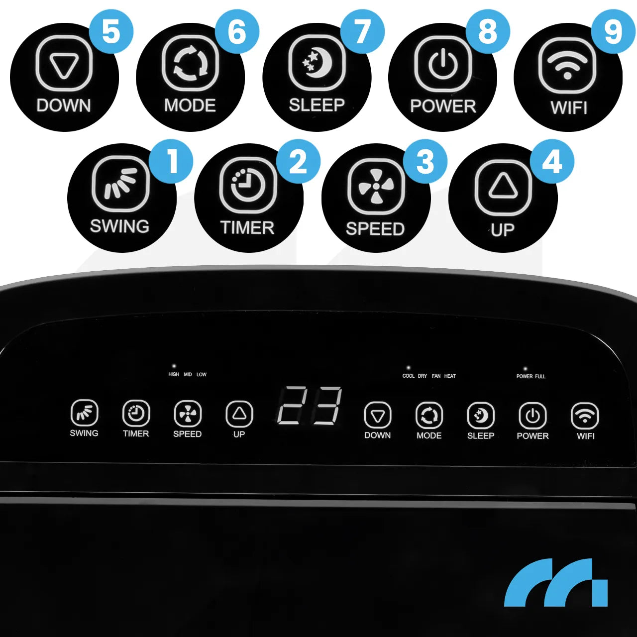 Aparatul de aer conditionat IcePRO4700 este echipat cu Wi-Fi , o telecomanda si un panou tactil LED, asigurand o utilizare completa si usoara. Conectarea la o aplicatie mobila va permite sa controlati setarile aparatului de aer conditionat de oriunde, inclusiv schimbarea modurilor de functionare, reglarea temperaturii si gestionarea temporizatorului.