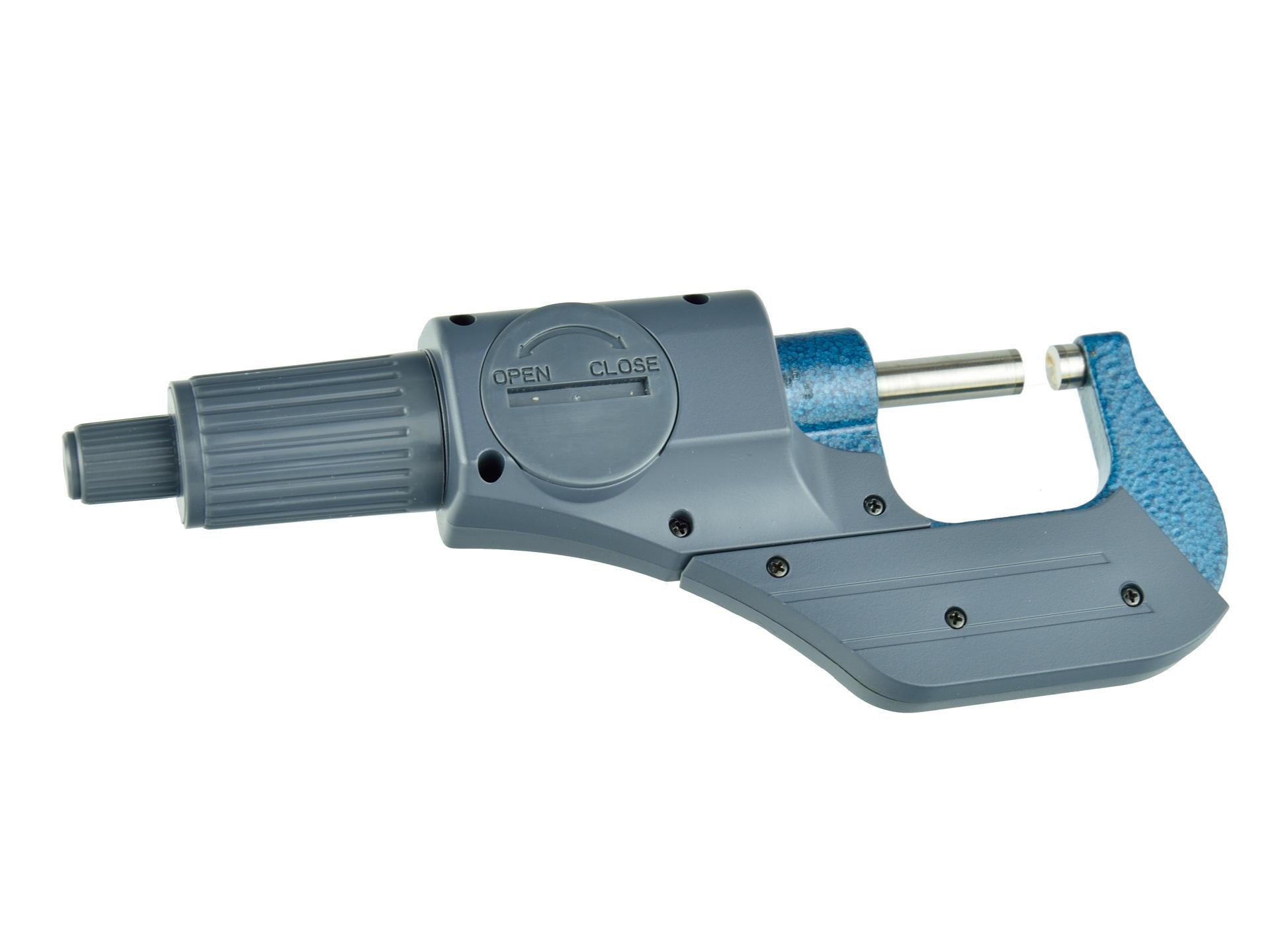 Micrometru electronic de precizie. Utilizat pe scara larga pentru masurarea precisa a distantelor scurte in ingineria mecanica si alte industrii mecanice. Afisajul LCD luminos permite citirea usoara a masuratorii. Langa corp exista o clema pentru macara care fixeaza pozitia nicovala. Setul include o bila de otel intr-un suport de cauciuc care permite montarea pe suprafata de masurare a micrometrului. Faciliteaza masurarea elementelor de suprafata mica.