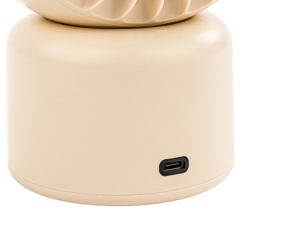 Ventilatorul este echipat cu o baterie litiu-ion eficienta de 3600 mAh, care permite functionarea pe termen lung fara a fi nevoie de conectarea la reteaua electrica. Alimentarea este furnizata printr-un conector USB universal de tip C.
