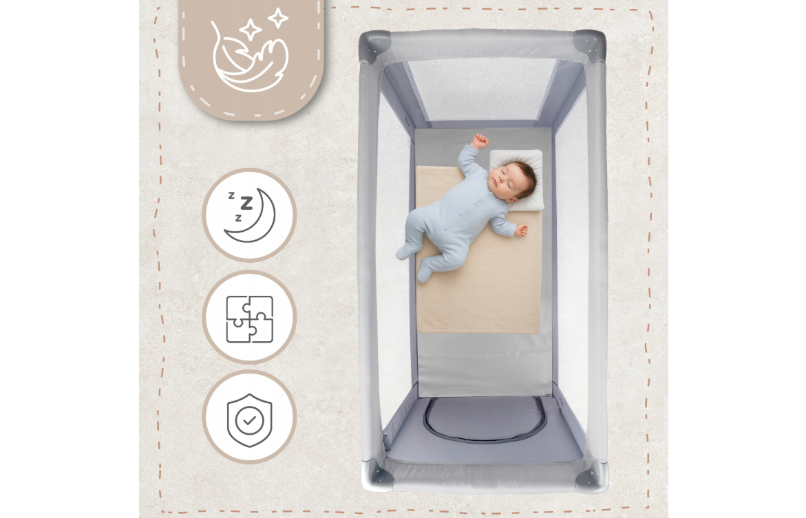 - Datorita intrarii laterale cu fermoar , copiii mai mari pot intra si iesi din patut independent. Acest lucru nu este doar convenabil, ci si o modalitate prin care cei mici isi pot dezvolta independenta si se pot juca in siguranta intr-un cadru de „tabara de baza”.