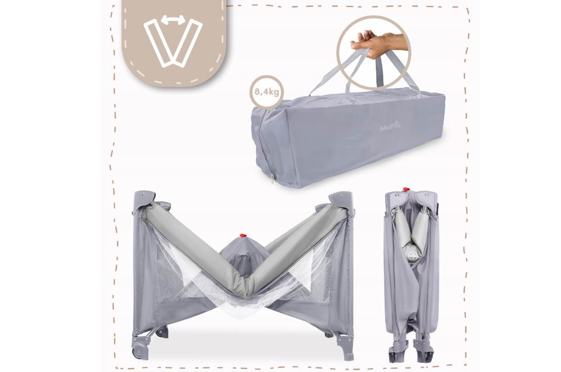 Datorita dimensiunilor sale compacte atunci cand este pliat, patul va incapea in portbagajul unei masini si este perfect atat pentru vacante, cat si pentru vizite la cei dragi.