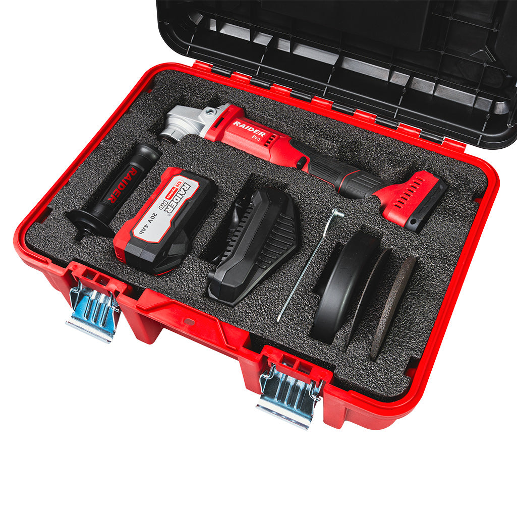 - Baterie litiu-ion de 4Ah – ofera o autonomie lunga de functionare. Masina si bateria fac parte din seria R20, ceea ce inseamna ca pot fi utilizate si cu alte scule din aceeasi serie, contribuind la o flexibilitate si o economie mai mari.