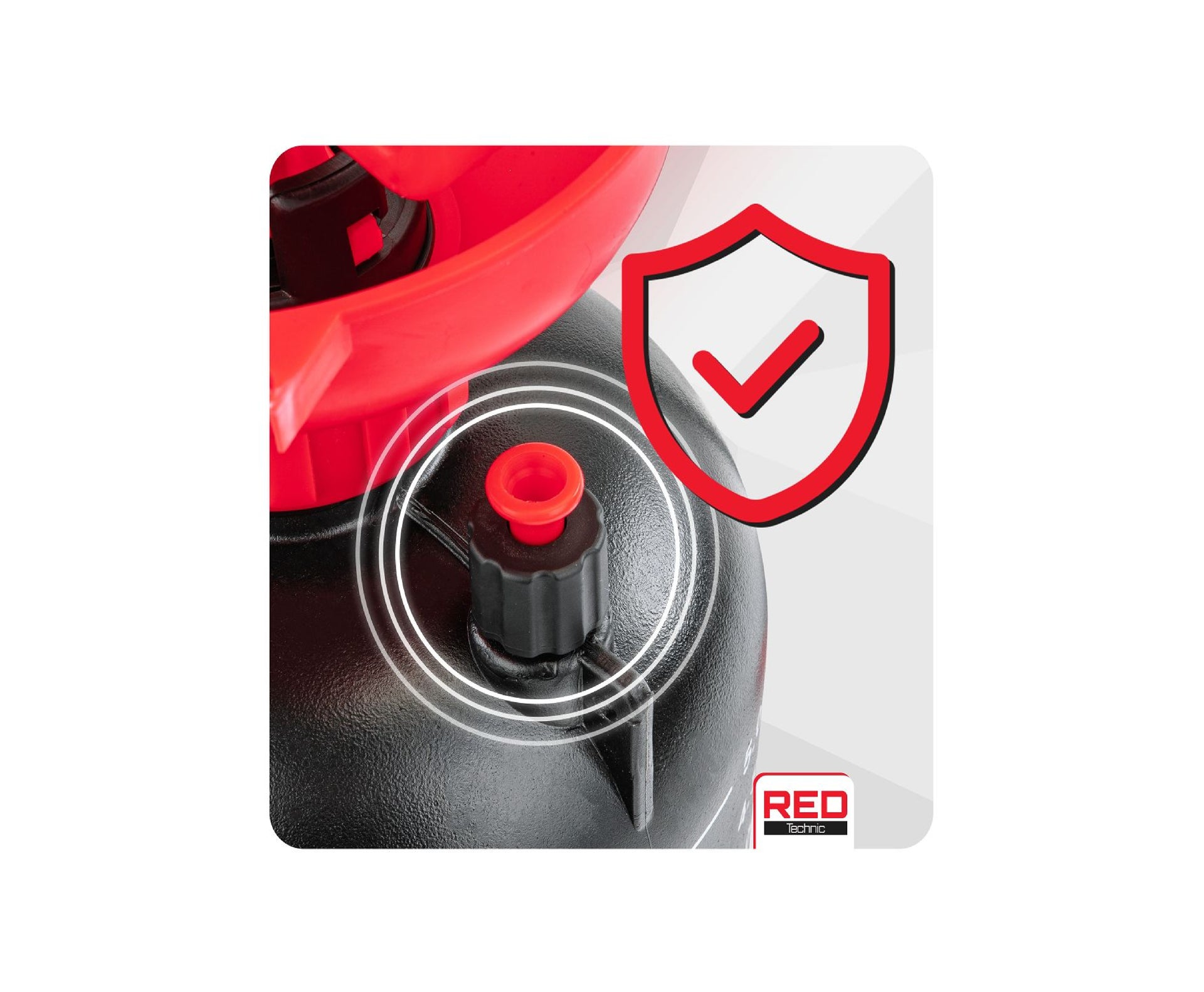 Un sistem de siguranta sub forma unei supape de siguranta elibereaza automat excesul de presiune din interiorul rezervorului.