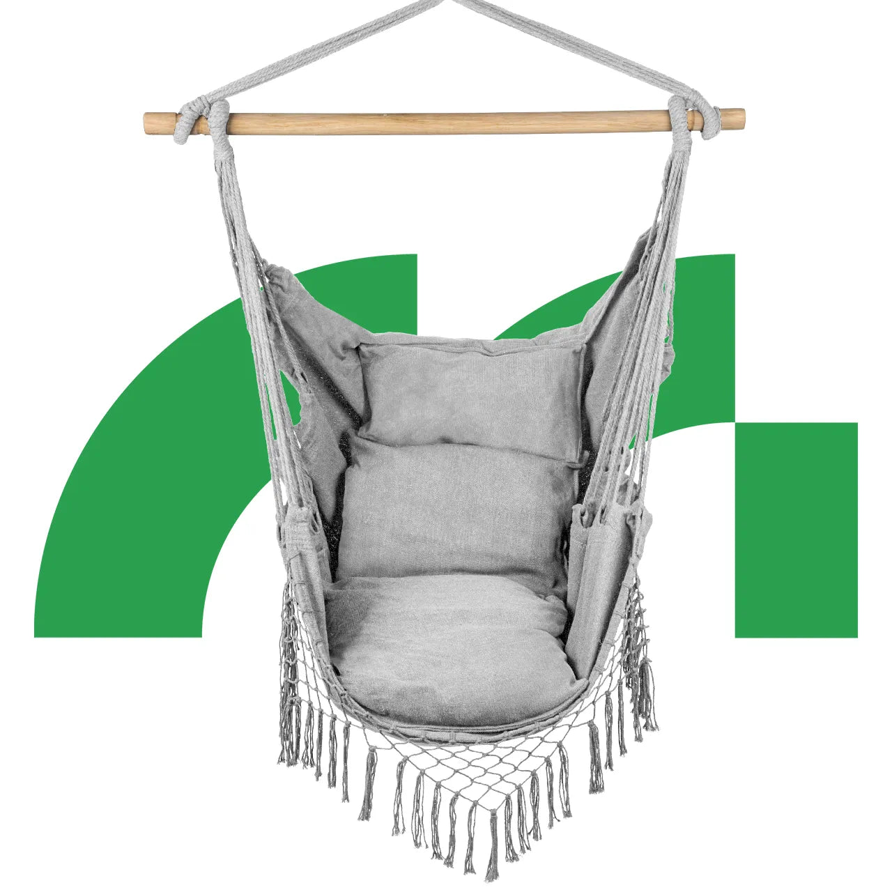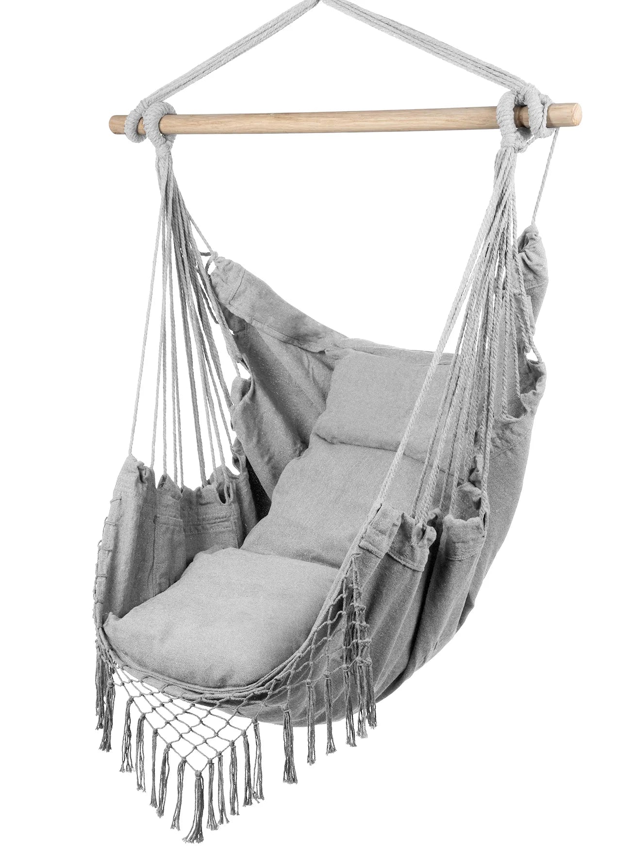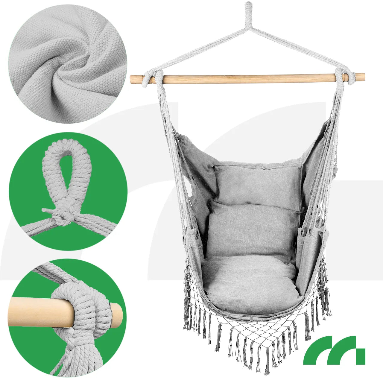 Datorita cadrului din lemn, hamacul nu este doar placut din punct de vedere estetic, ci si mai functional. Acesta ofera stabilitate, prevenind in acelasi timp incurcarea franghiilor, ceea ce creste suplimentar durabilitatea acestui scaun unic.