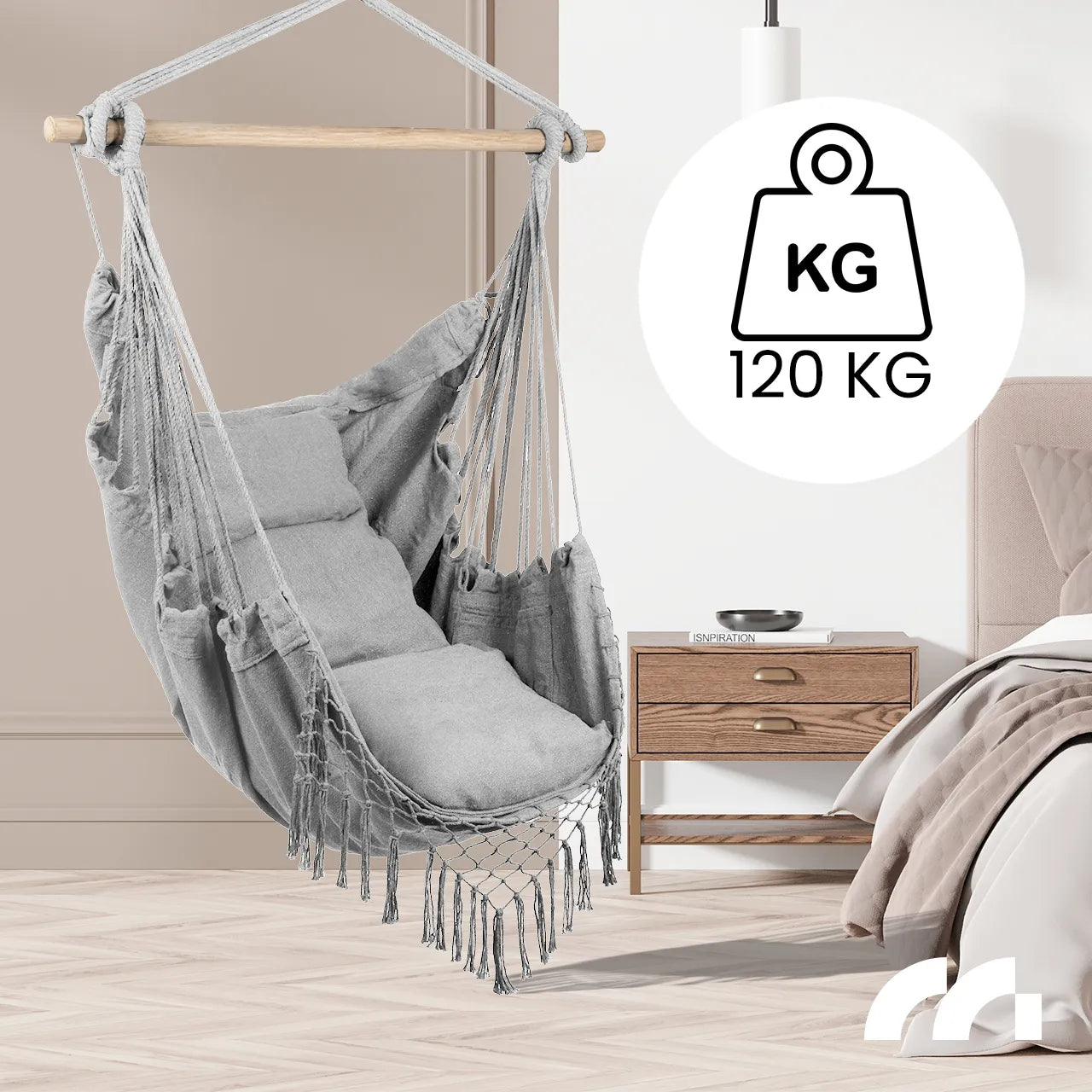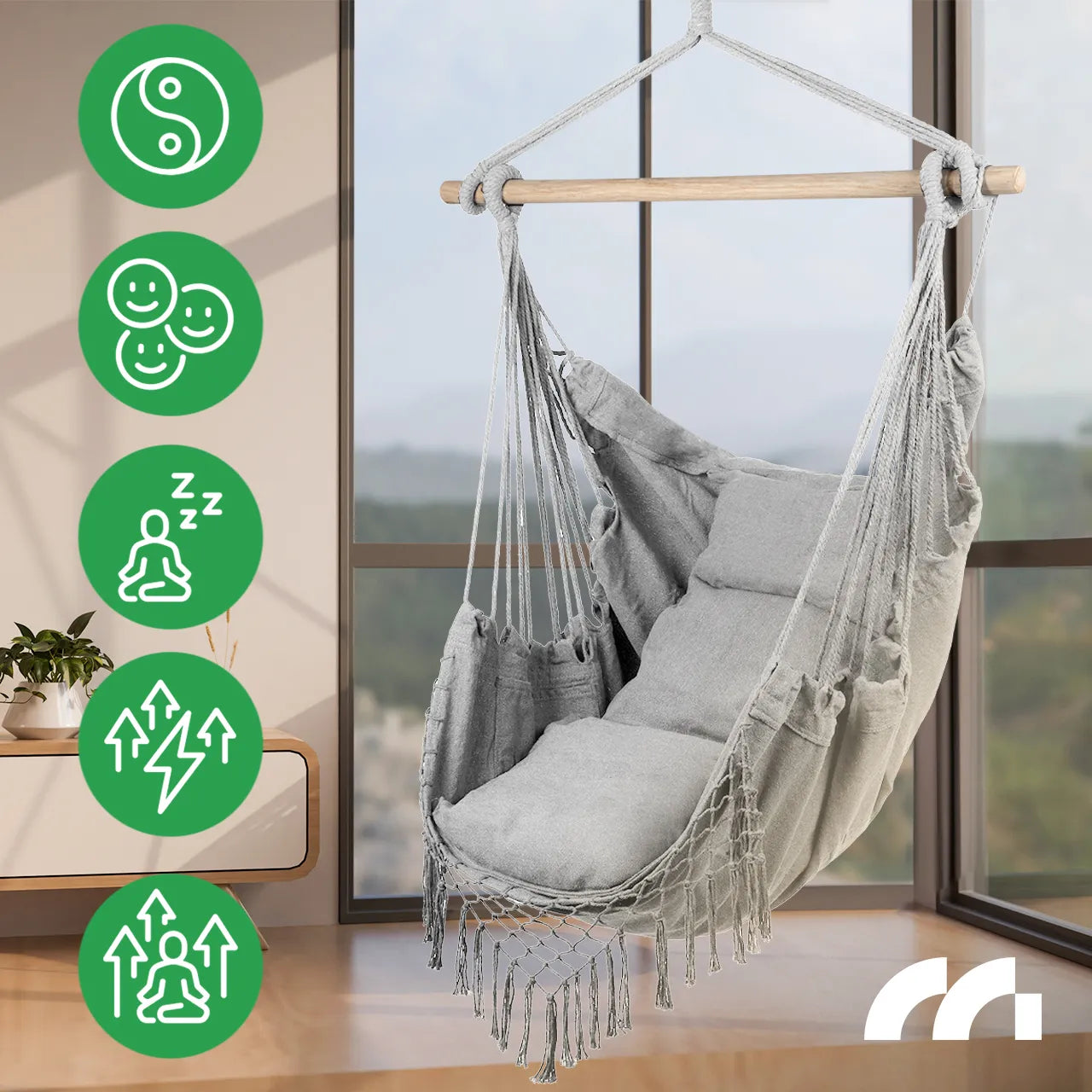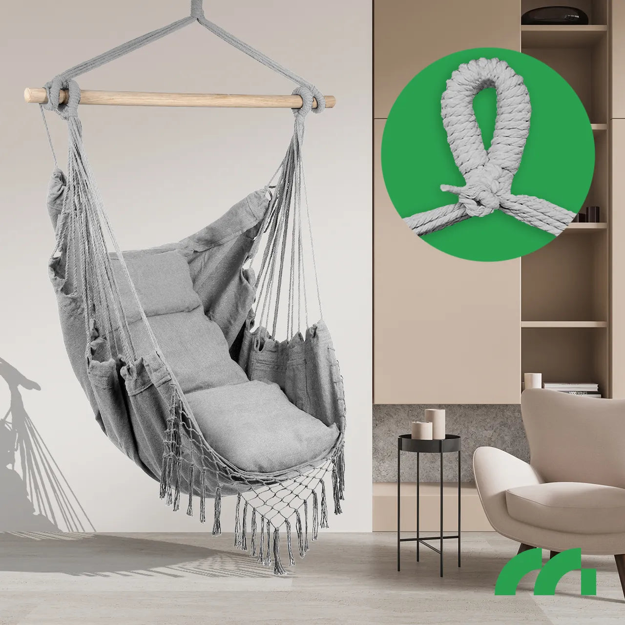 Datorita cadrului din lemn, hamacul nu este doar placut din punct de vedere estetic, ci si mai functional. Acesta ofera stabilitate, prevenind in acelasi timp incurcarea franghiilor, ceea ce creste suplimentar durabilitatea acestui scaun unic.