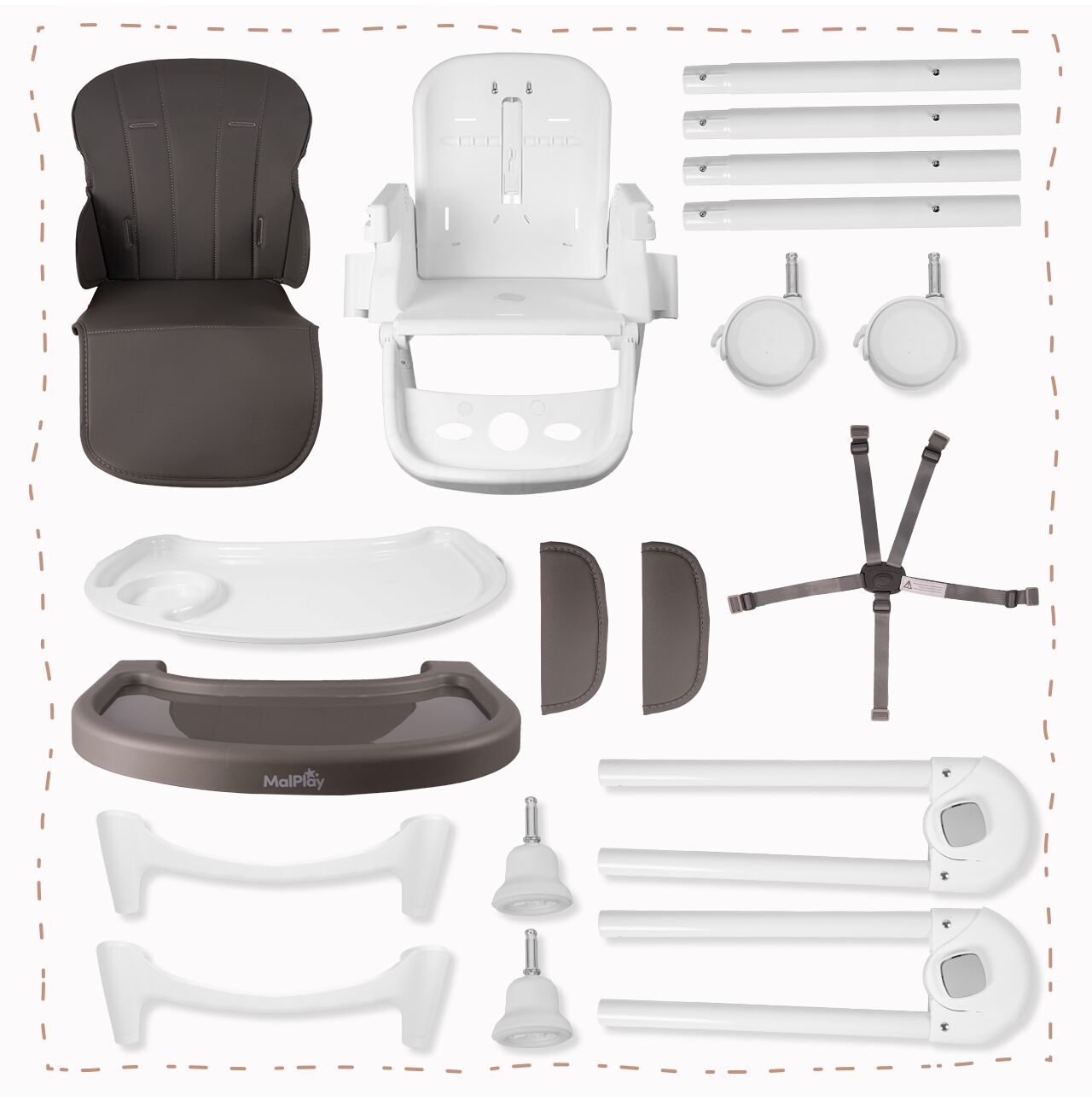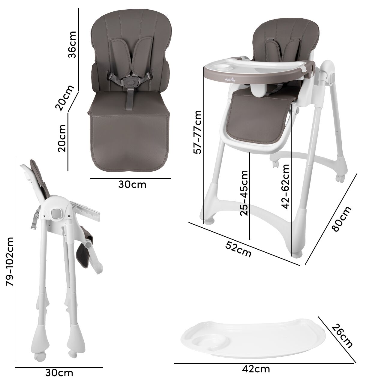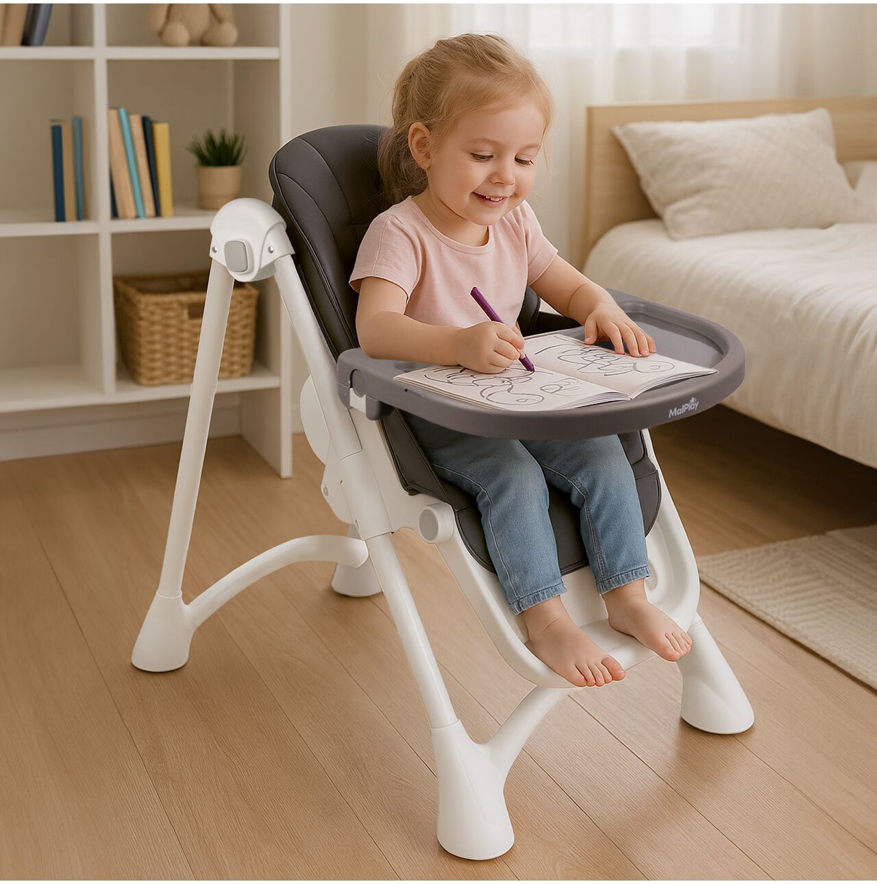 - Scaun inalt de hranire cu tava – ajustati inaltimea si spatarul in functie de nevoile copilului dumneavoastra