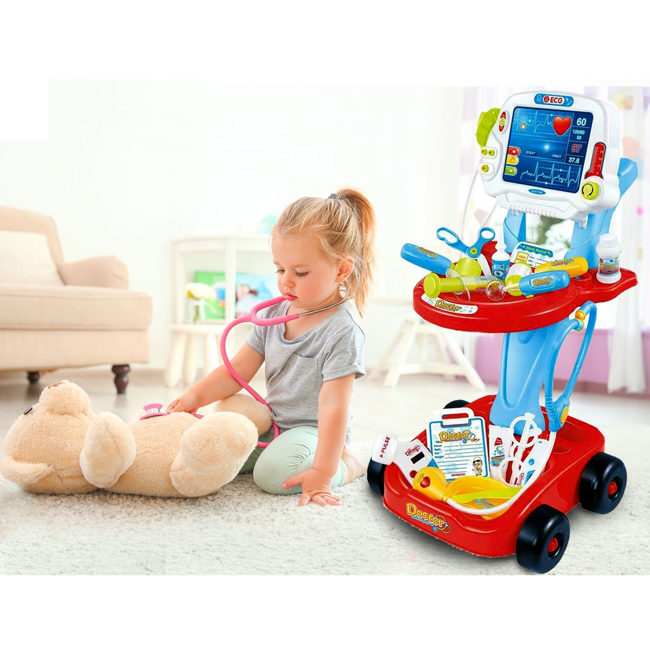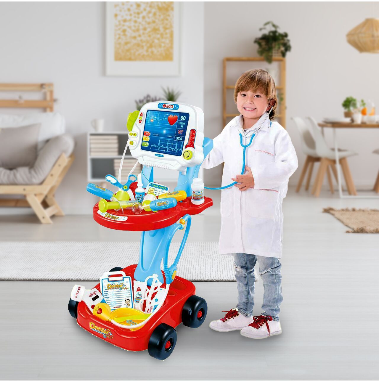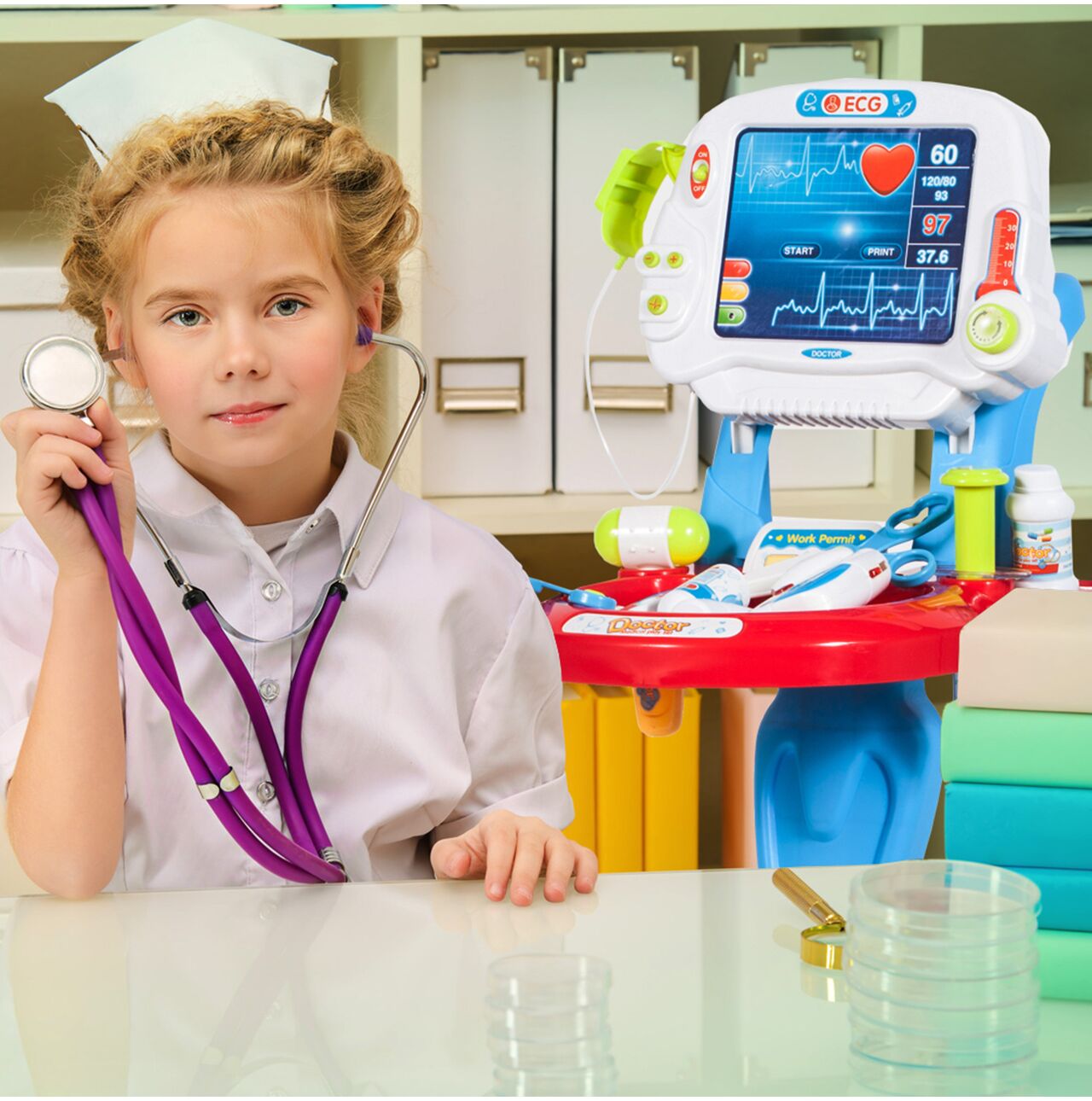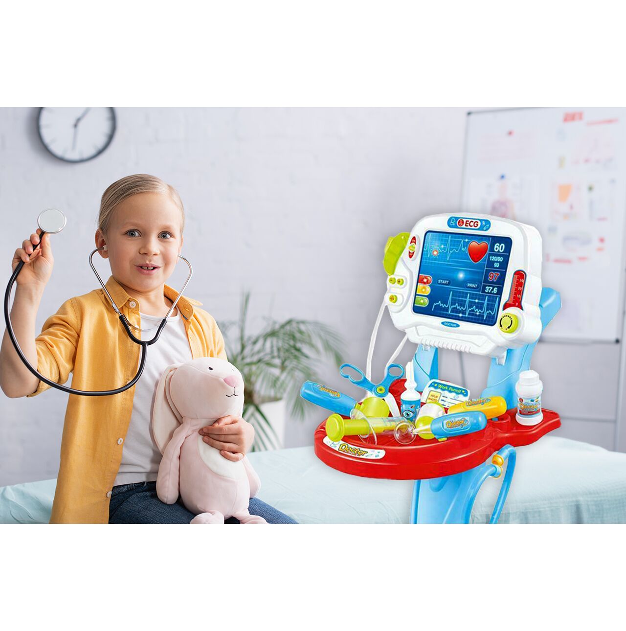 Daca observi ca micutul tau este foarte interesat de ceva, nu mai astepta; ofera-i cele mai bune conditii posibile pentru a-si dezvolta abilitatile unice. Profita de aceasta ocazie pentru a impartasi cu el misterele corpului uman. In timp ce se distreaza, copilul tau va dobandi cunostinte utile, va dezvolta coordonarea motorie si manuala si va dobandi blandetea si grija necesare pentru a ingriji pacientii bolnavi.