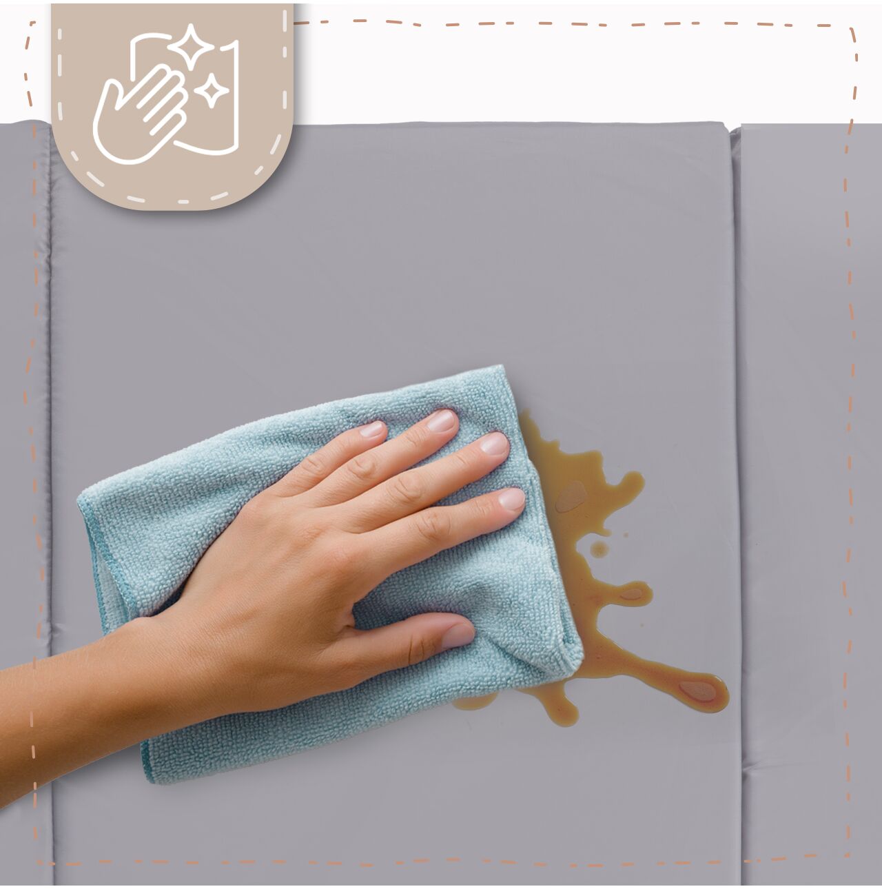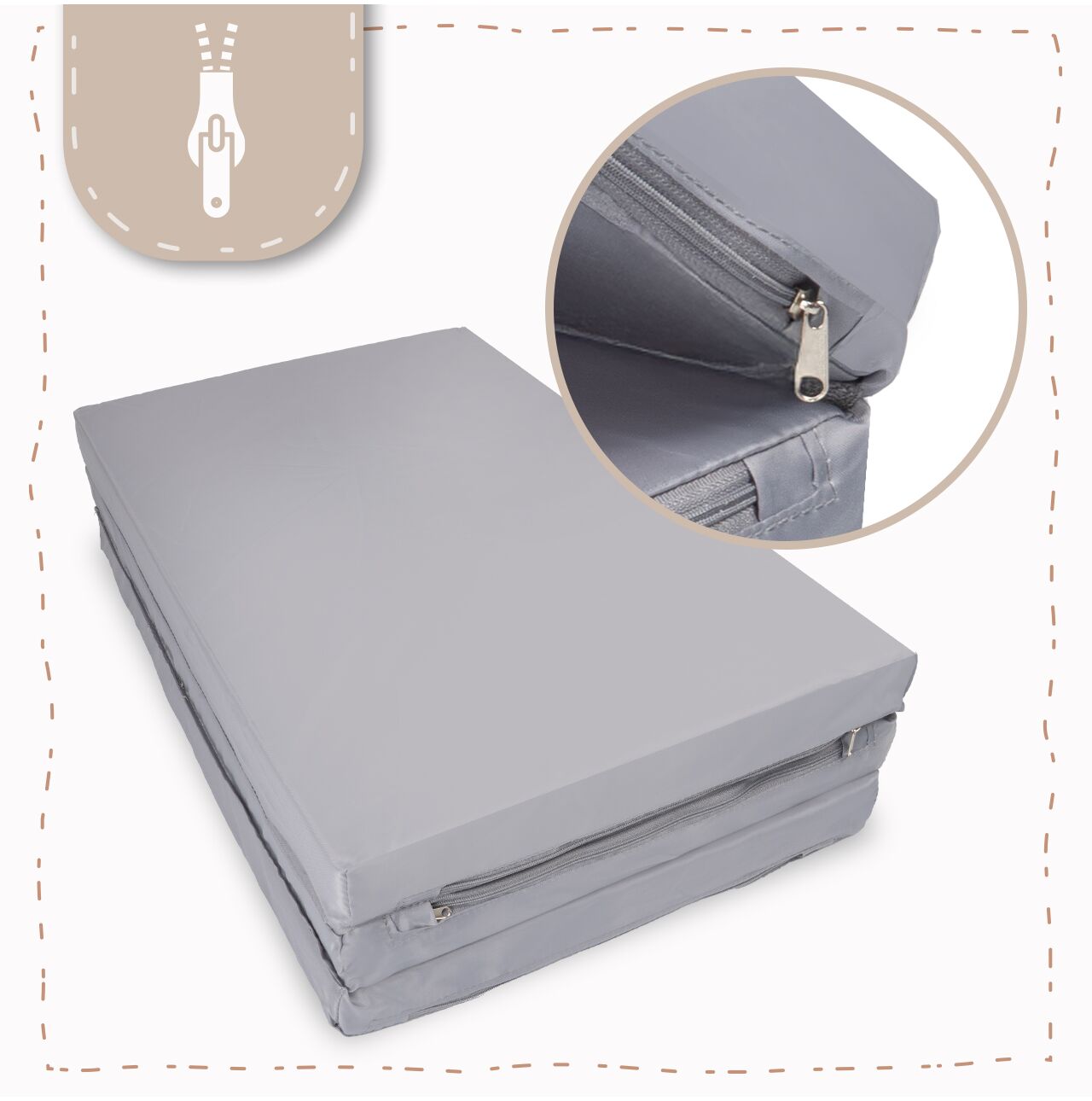 Salteaua are o husa detasabila. Husa se inchide cu un fermoar rezistent si poate fi usor indepartata si spalata la masina la 30°C . Acest lucru permite saltelei sa ramana curata chiar si in urma utilizarii zilnice, ceea ce este esential pentru mentinerea igienei bebelusului.