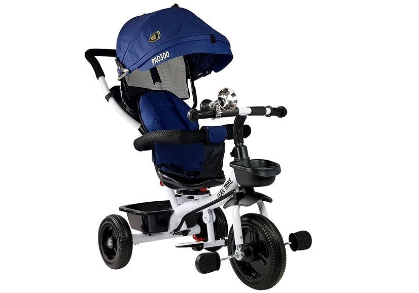 Designul bicicletei include un cos spatios pentru cumparaturi sau comorile copilului, plasat intre rotile din spate, precum si o geanta mica cu fermoar situata pe ghidonul pentru parinti - aceste detalii faciliteaza plimbarile si excursiile de o zi intreaga. Datorita barierei din spuma moale, copilul dumneavoastra va fi complet in siguranta in timpul plimbarilor si nu va cadea din sa. In plus, este posibil sa intoarceti scaunul copilului spre dumneavoastra si sa supravegheati siguranta acestuia. Exista, de asemenea, un clopotel tip trompeta pe ghidon, cu ajutorul caruia copilul dumneavoastra va putea sa-i informeze cu incredere pe ceilalti ca se afla pe bicicleta. Bicicleta cu trei roti pentru copii este destinata tuturor bebelusilor cu varsta cuprinsa intre 6 si 60 de luni, a caror greutate nu depaseste 25 kg. Este fabricata din material durabil si rezistent , care garanteaza o durata lunga de viata si confort in utilizare. Bicicleta are roti moi din EVA. Tricicleta pentru copii este ambalata in cutia originala, in interiorul careia se afla suruburi, unelte si instructiuni pentru o asamblare usoara.
