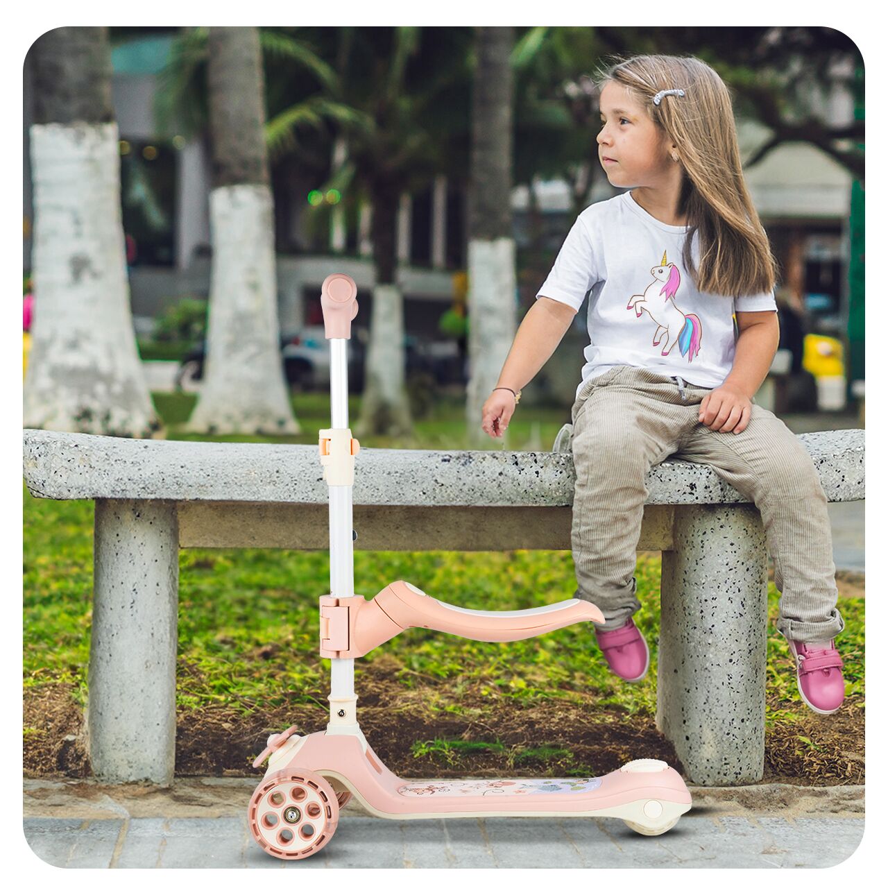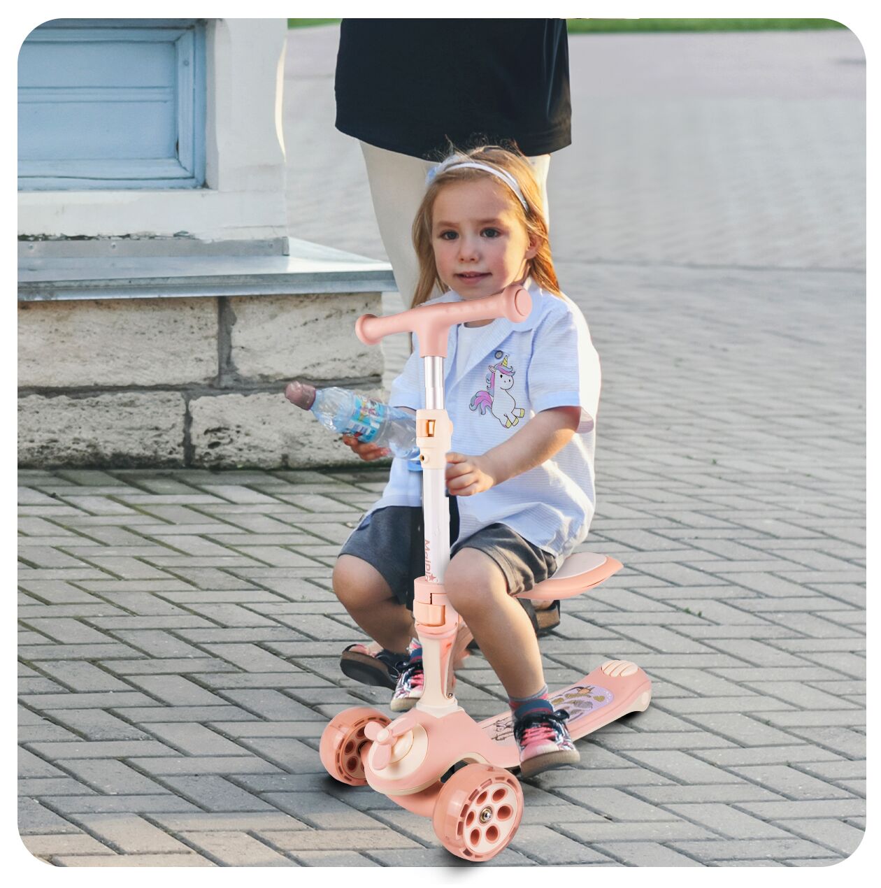 Aceasta nu este doar o trotineta clasica pentru stat in picioare - este echipata cu un scaun confortabil care permite copilului dumneavoastra sa o foloseasca in timp ce sta asezat. Este o solutie excelenta pentru copiii mai mici care abia invata sa se echilibreze, precum si pentru cei mici care au nevoie de o pauza in timp ce se joaca. Scaunul este stabil si usor de instalat, ceea ce face trotineta si mai versatila si adaptabila nevoilor unui copil in crestere.