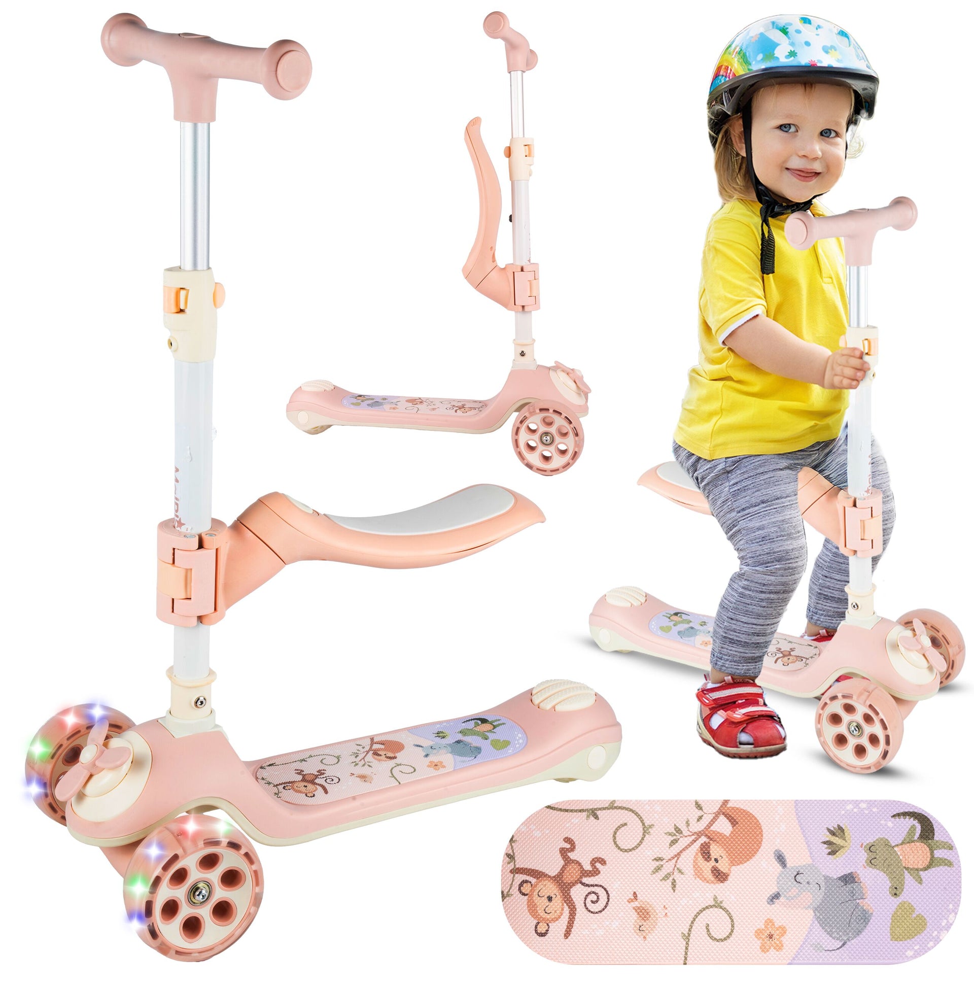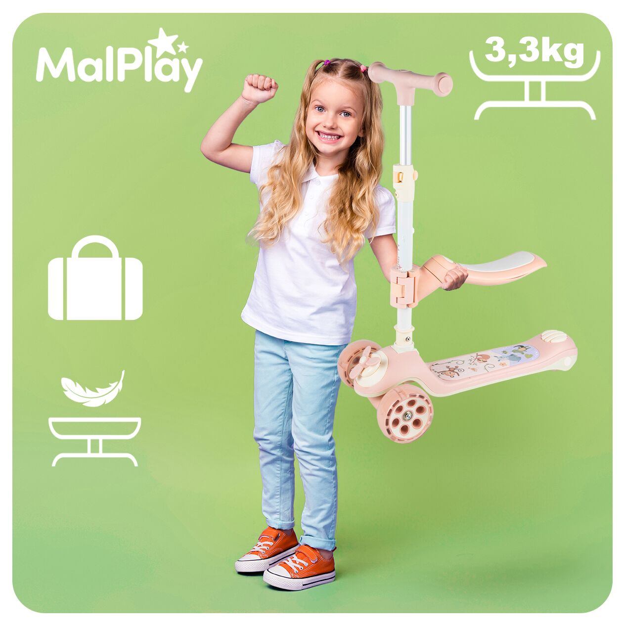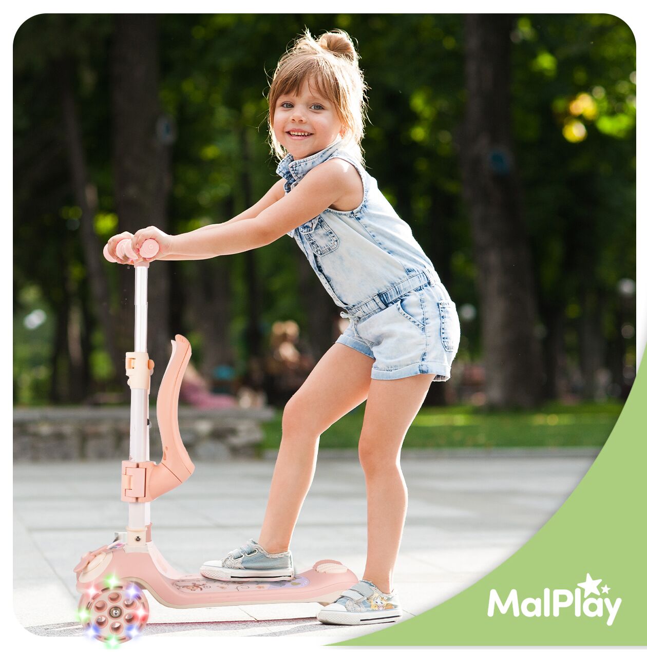 O trotineta cu trei roti este o distractie deosebita in aer liber! Copiii se pot bucura de mersul pe o trotineta sau un ride-on, dezvoltandu-si in acelasi timp coordonarea motorie si echilibrul. Rotile luminoase cu LED-uri si designul atractiv cu animale incurajeaza joaca activa in timpul plimbarilor sau la locul de joaca. Ideala pentru copiii cu varsta de 2 ani si peste.