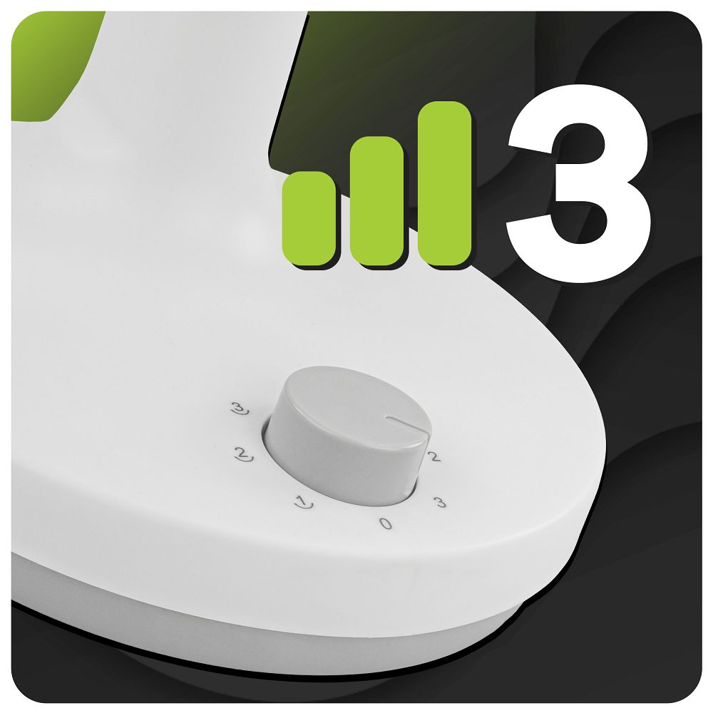 Dispozitivul ofera trei niveluri predefinite de intensitate a fluxului de aer, ceea ce permite ajustarea precisa a functionarii ventilatorului in functie de conditiile ambientale.