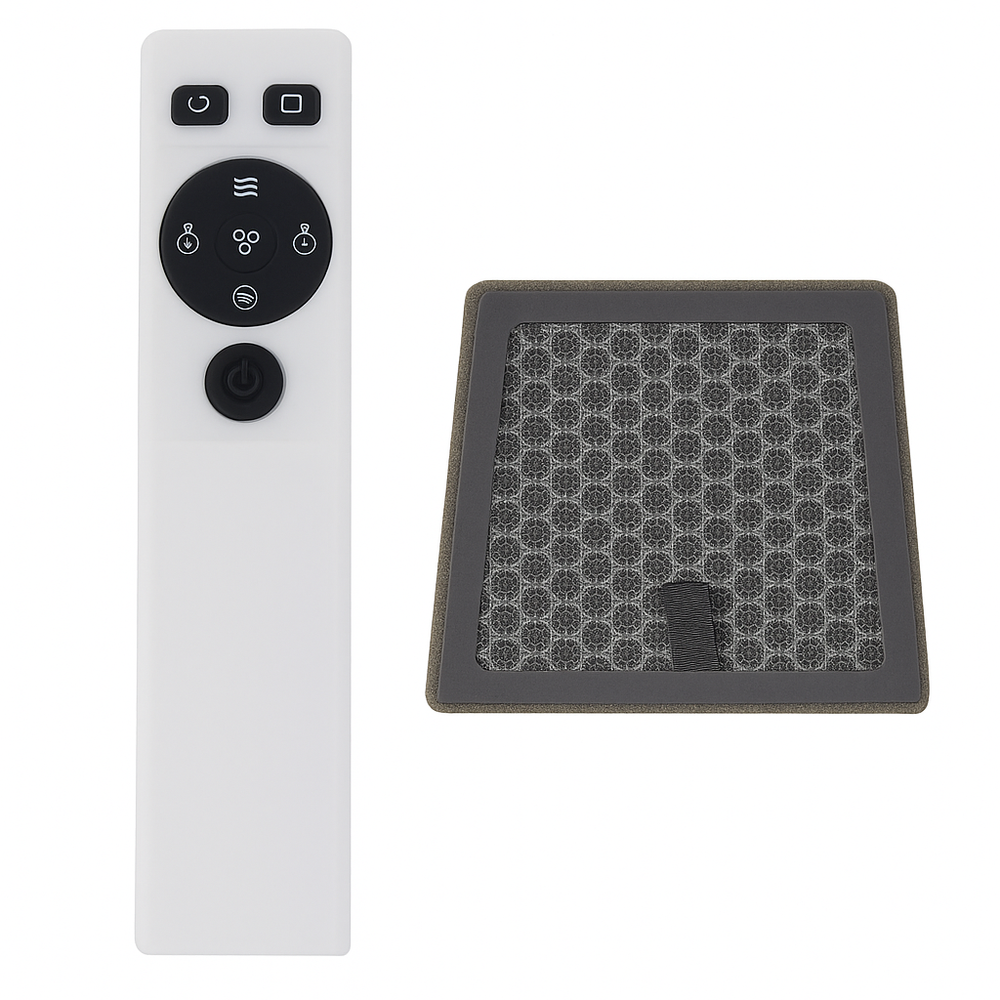 Setul include o telecomanda ergonomica cu sigla LEAN, care va permite sa controlati convenabil dispozitivul fara a fi nevoie sa va apropiati. Selectati modul, activati oscilatia, setati cronometrul - totul de pe canapea.