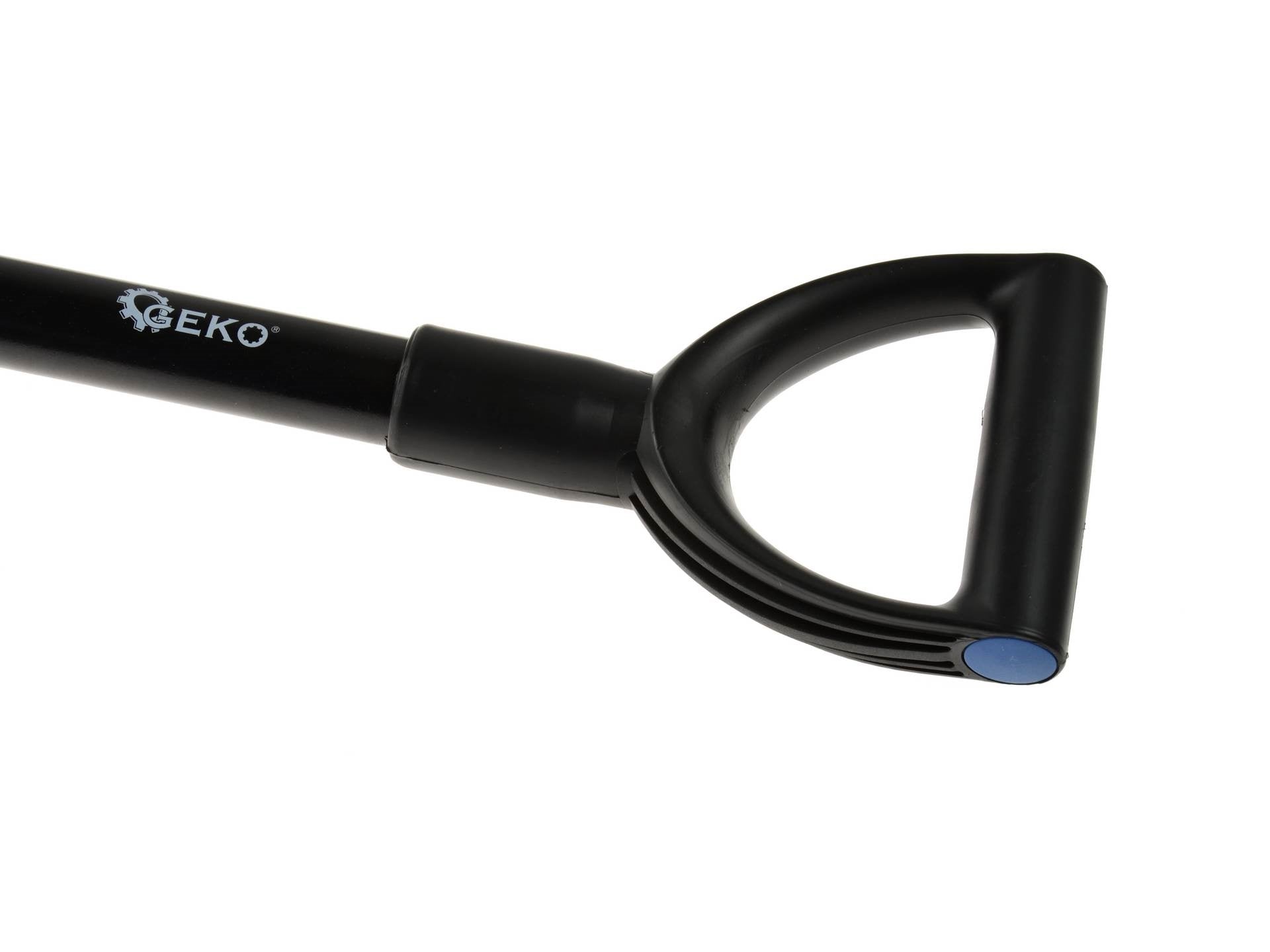 Lopata are ca capat un maner în formă de D din plastic rezistent.