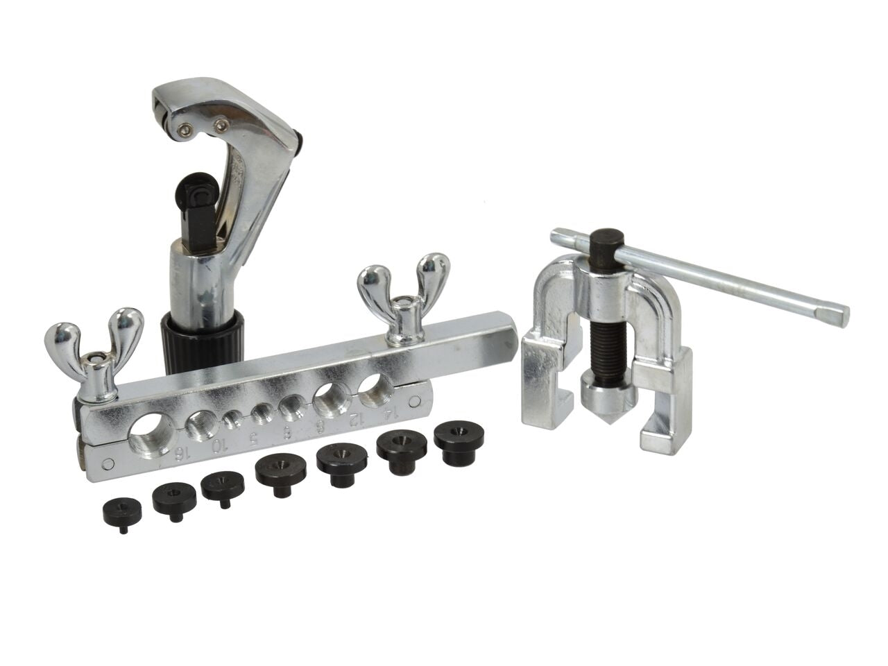 Un set pentru conductele de frana si combustibil. Este potrivit pentru taierea si extinderea tevilor si firelor de cupru, alama si aluminiu cu pereti cu grosimea de pana la 1 mm.