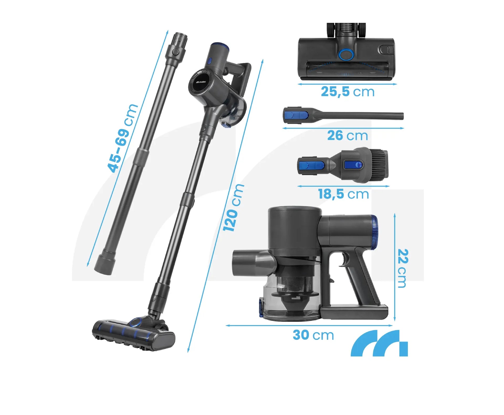 - ASPIRATOR VERTICAL - ideal pentru curatarea podelelor dure (laminat, gresie, parchet) si a covoarelor. Tubul telescopic va permite sa curatati convenabil suprafete mai mari si sa ajungeti in locuri mai inalte, cum ar fi marginile tavanului si rafturile superioare.