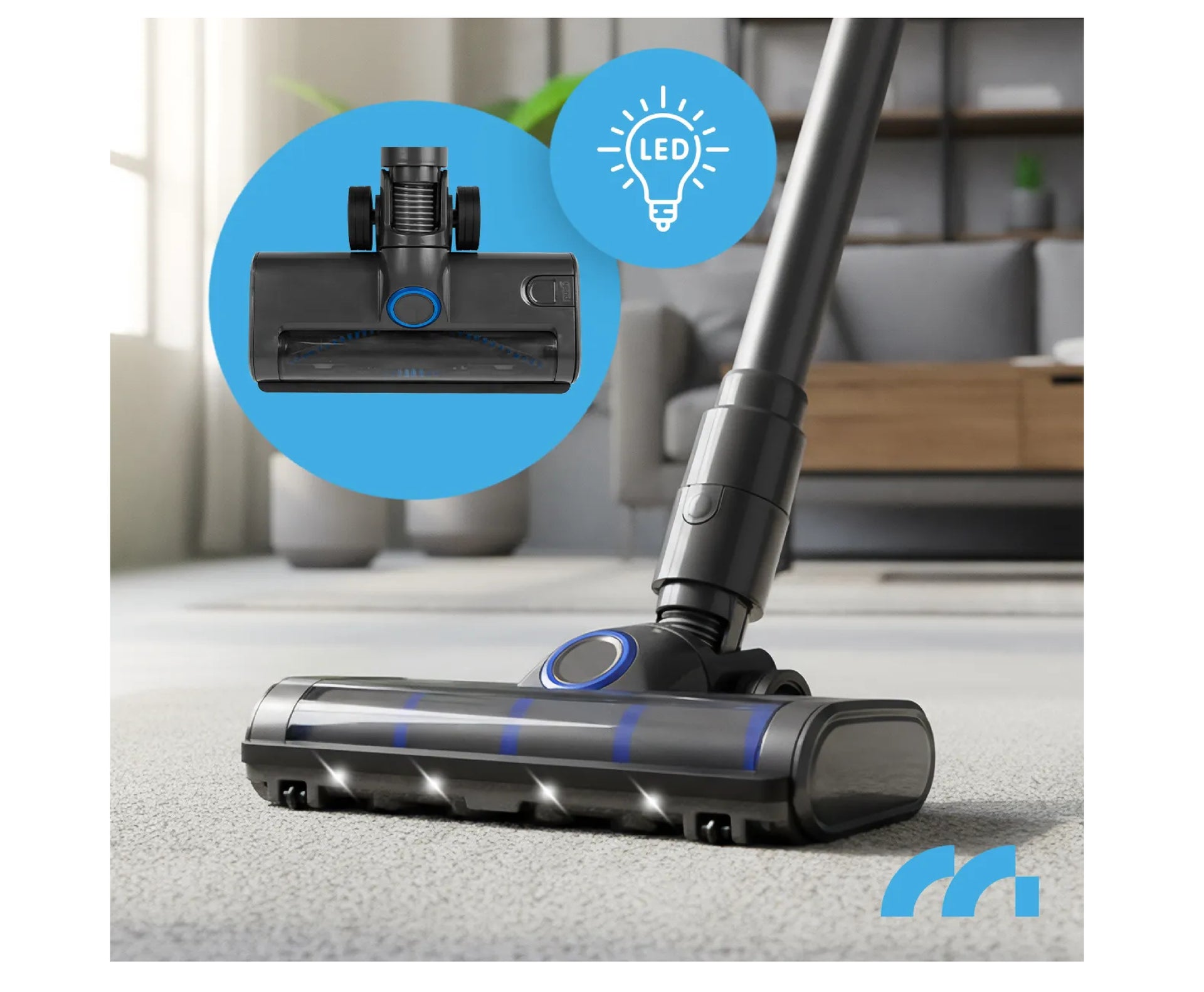 - Datorita periei electrice cu LED, aspiratorul indeparteaza eficient murdaria, chiar si pe cea ascunsa adanc in covoare.