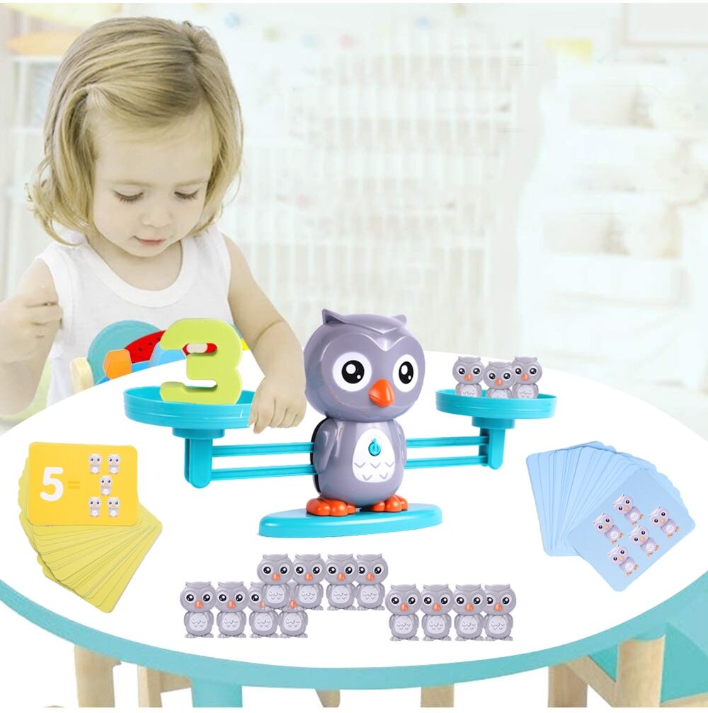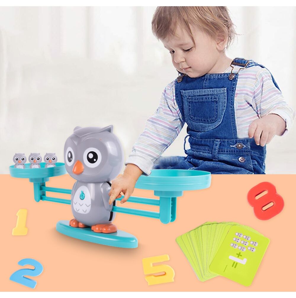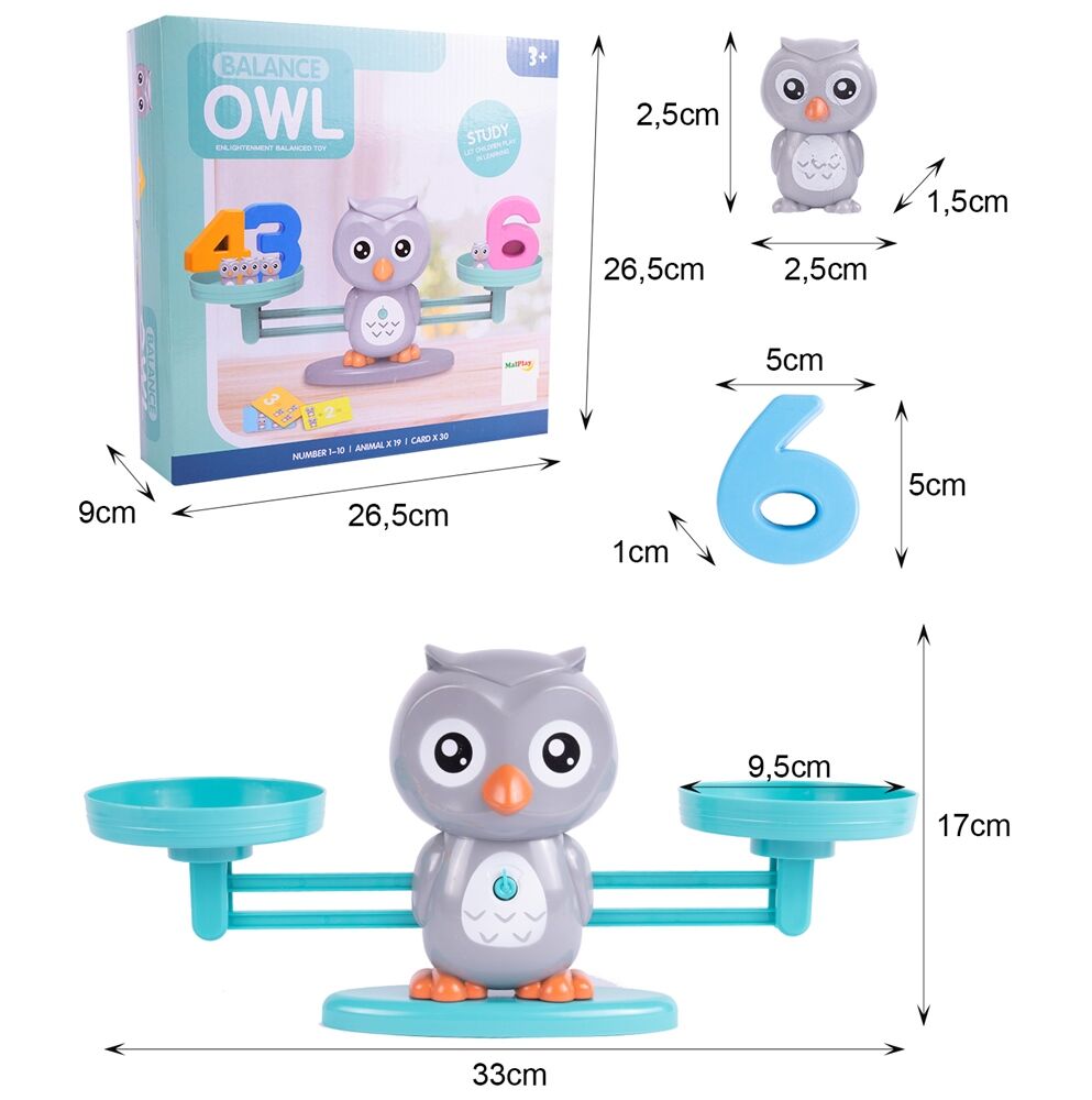 Priveste minunile ascunse in aceasta jucarie: un cantar colorat cu figura unei bufnite mari, greutati in forma de bufnite mici, numere si cartonase cu sarcini iti vor oferi ore lungi de joaca interesanta, care te vor conduce catre descoperiri fascinante!