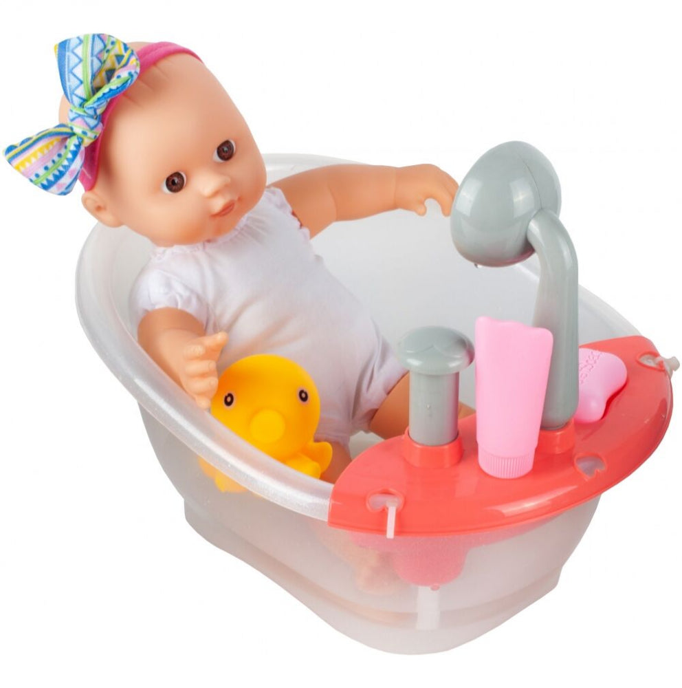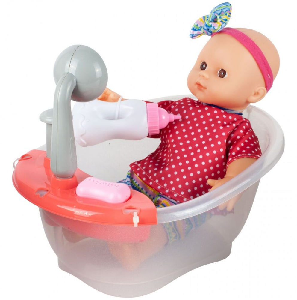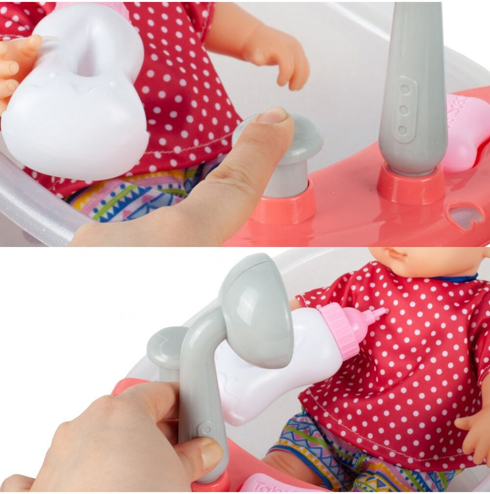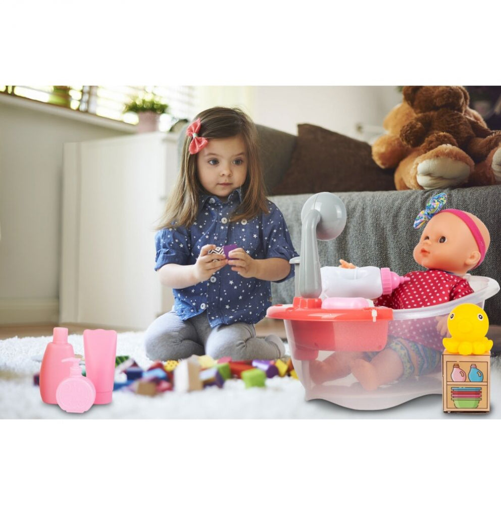 Un bebelus intr-o cadita, cu un set complet de accesorii, va fi o alegere excelenta pentru fiecare fetita care invata elementele de baza ale responsabilitatii si igienei.