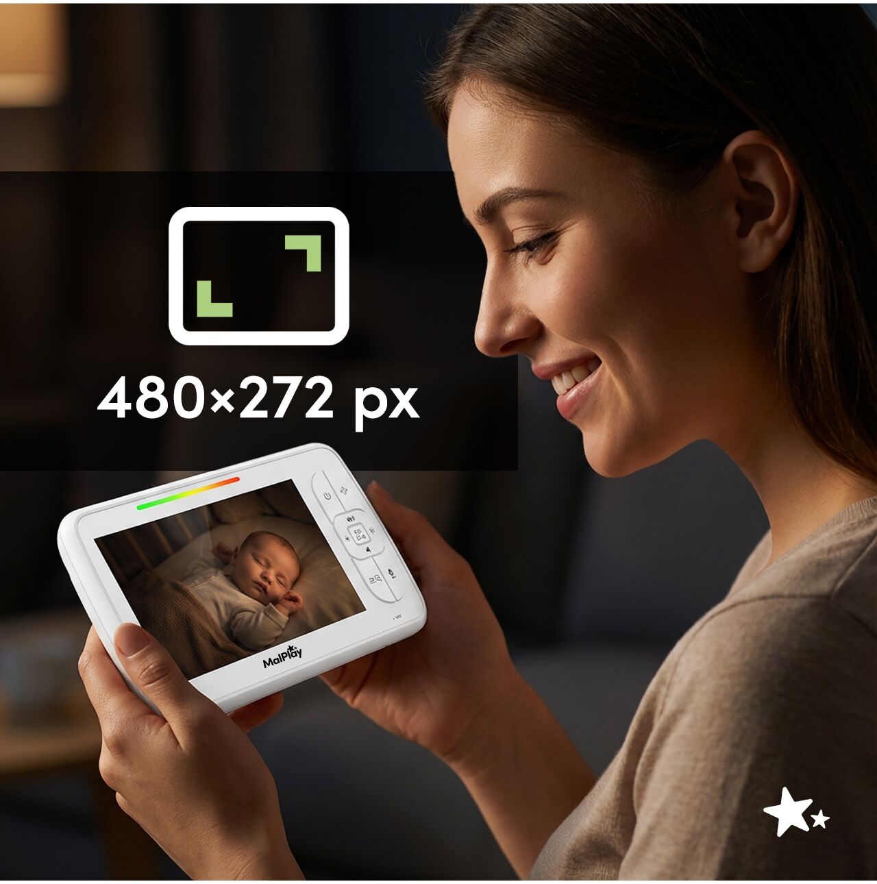 - Ecran LCD color mare, de 5,0” – monitorizare convenabila in timp real a bebelusului dumneavoastra