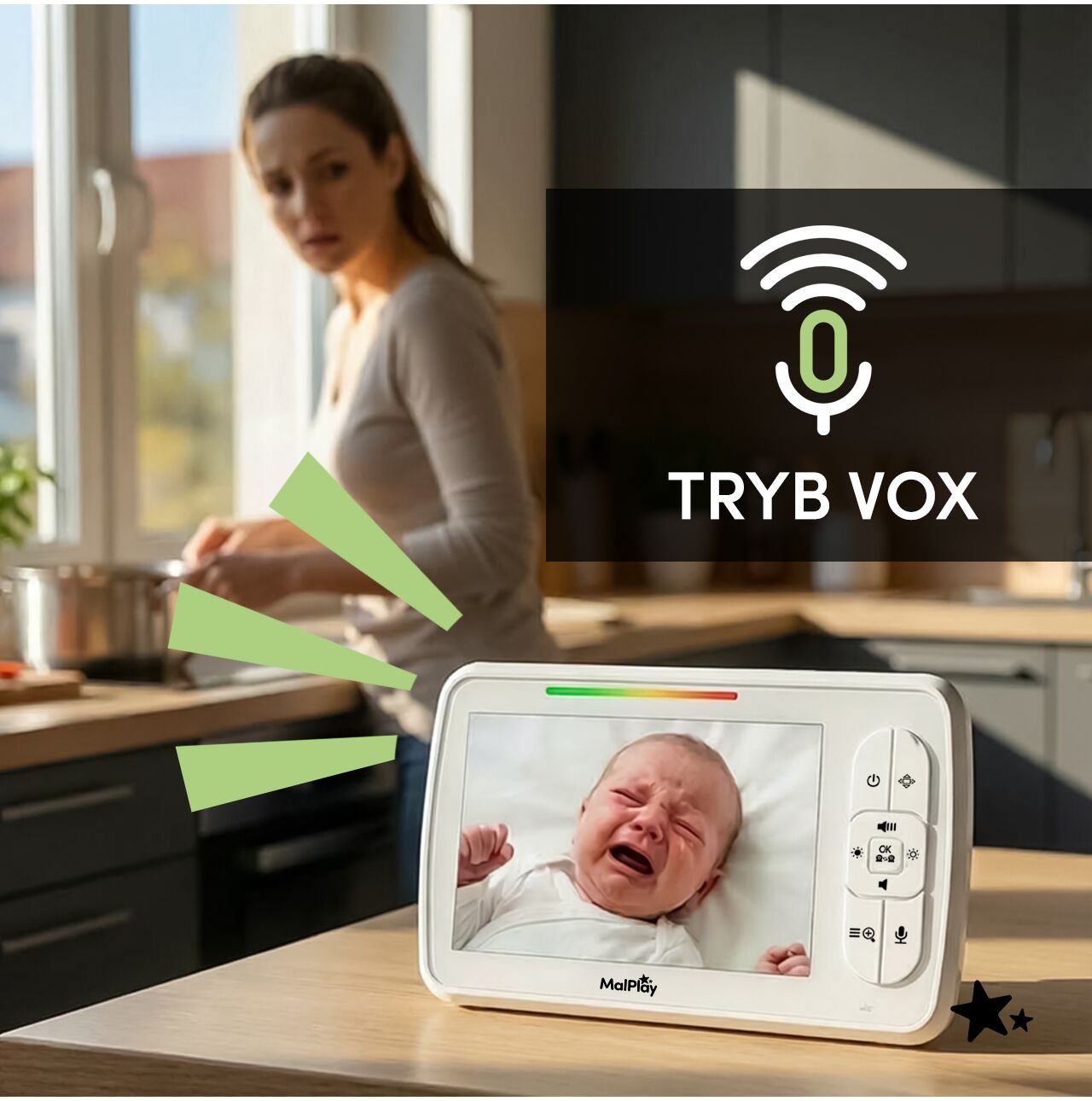 In plus, modul VOX (cu sensibilitate reglabila) permite bonei sa raspunda la sunetele din camera bebelusului si sa activeze previzualizarea atunci cand este nevoie.