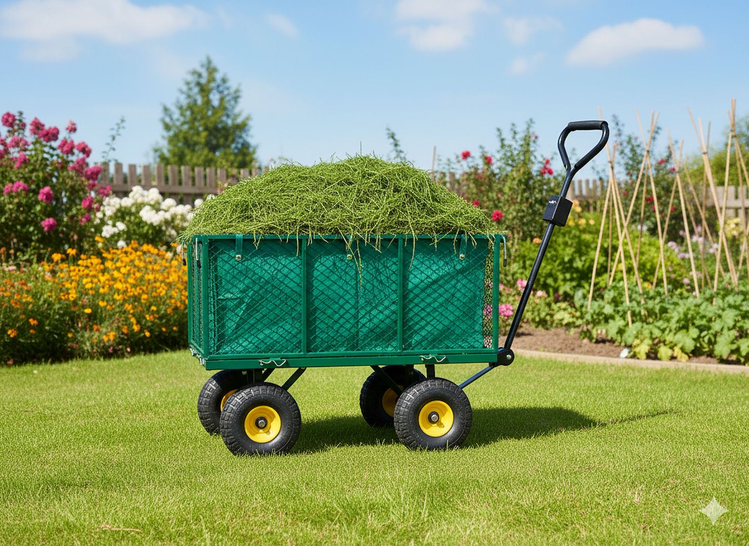 Acest carucior de gradina robust, spatios si exceptional de practic, cu o capacitate de 220 de litri, este solutia perfecta pentru transportul solului, frunzelor, lemnului, uneltelor si altor materiale. Datorita designului sau bine gandit si manoperei de inalta calitate, va eficientiza orice lucrare de gradinarit sau constructie.