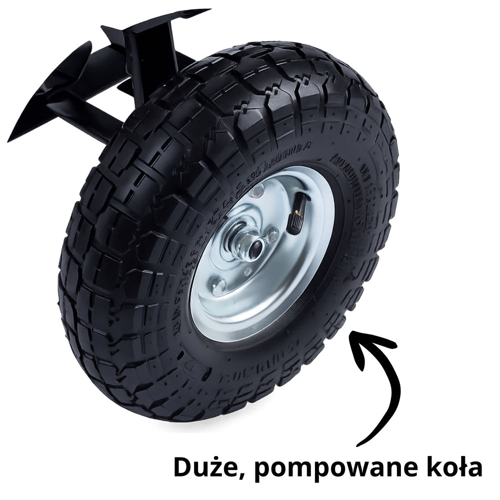 Constructia stabila si cele patru roti mari, pneumatice, din cauciuc asigura o manevrabilitate lina si o tractiune buna chiar si pe teren accidentat, cum ar fi iarba, pietrisul sau nisipul. O capacitate maxima de incarcare de 120 kg permite transportul in siguranta al unor incarcaturi mai grele, fara a va face griji cu privire la pierderea stabilitatii. Tava detasabila faciliteaza incarcarea si descarcarea rapida a materialelor, iar indepartarea acesteia creste functionalitatea caruciorului in timpul diverselor sarcini de gradinarit.