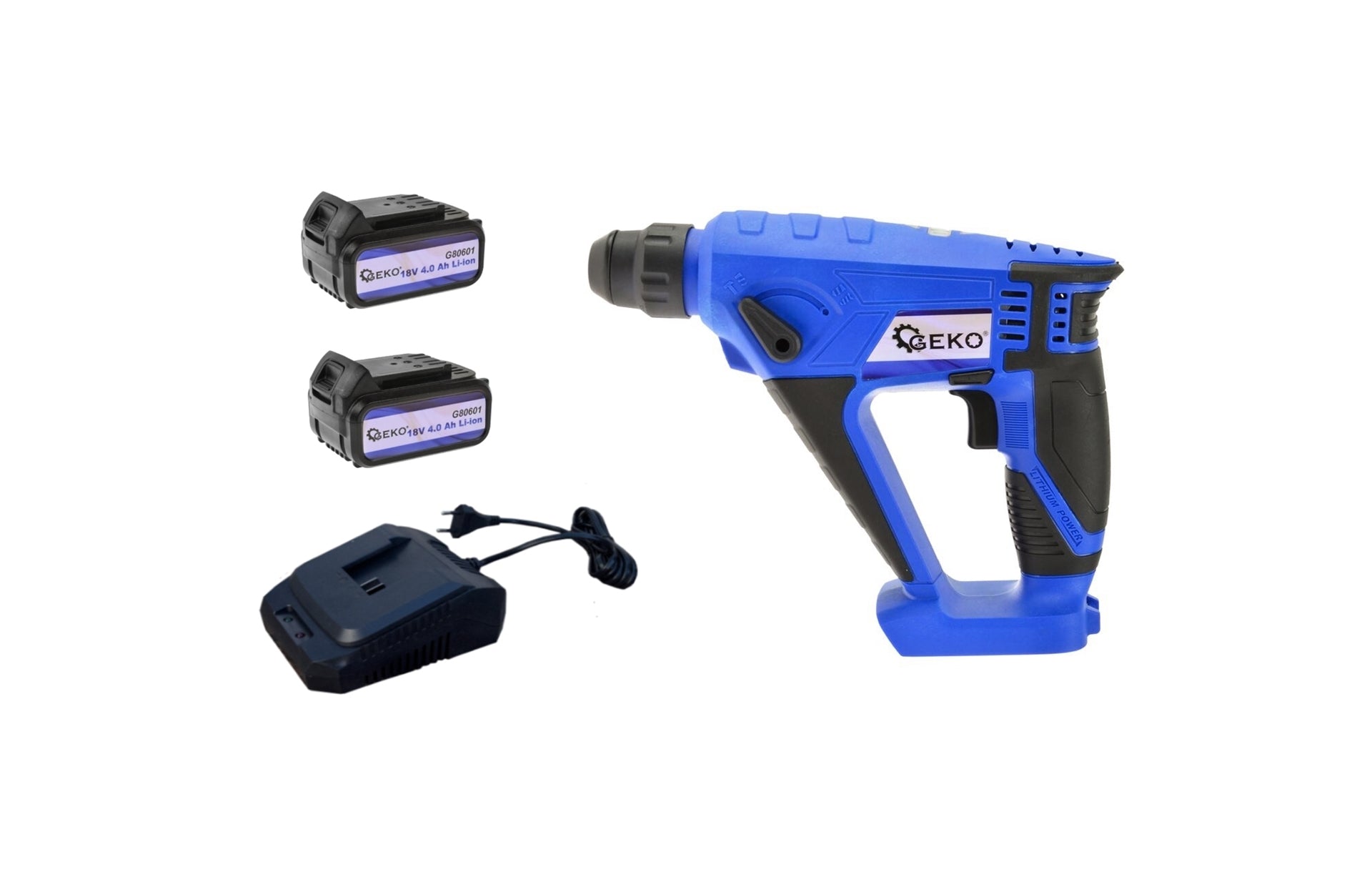 Ciocan rotopercutor cu acumulator Geko + 2 acumulatori Li-ion 18V 4.0 Ah + incarcator