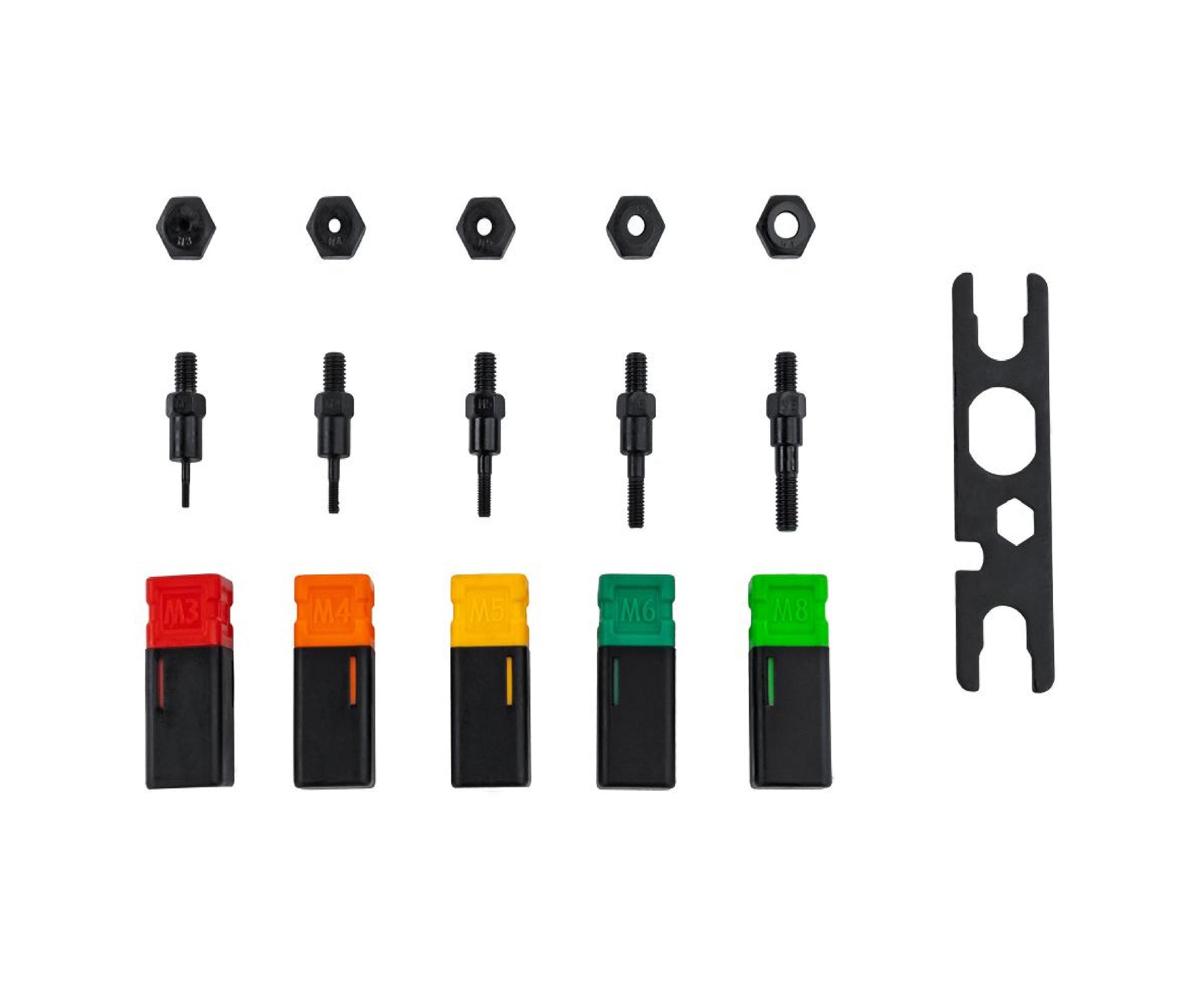 Setul include dimensiunile M3, M4, M5, M6 si M8 , facilitand tranzitia intre sarcinile comune de asamblare.
